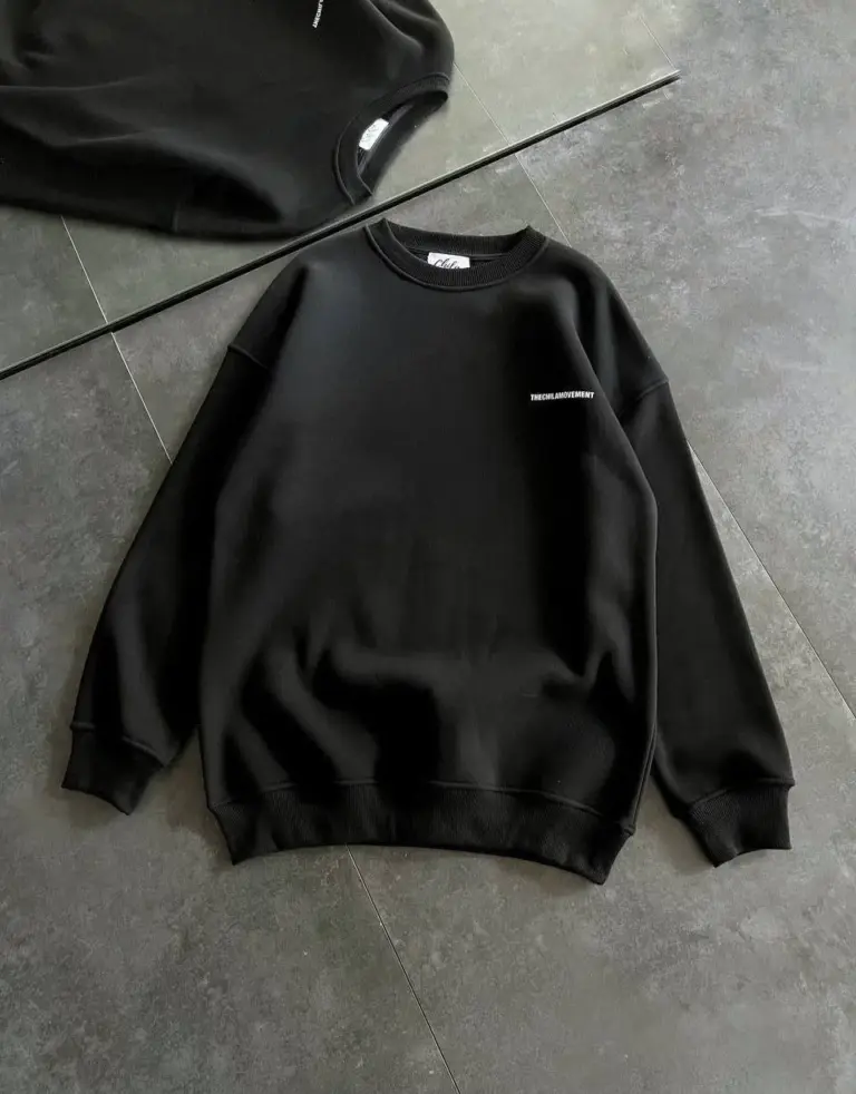 3 iplik Kışlık pamuklu Bisiklet Yaka Oversize Baskılı SweatShirt – Siyah