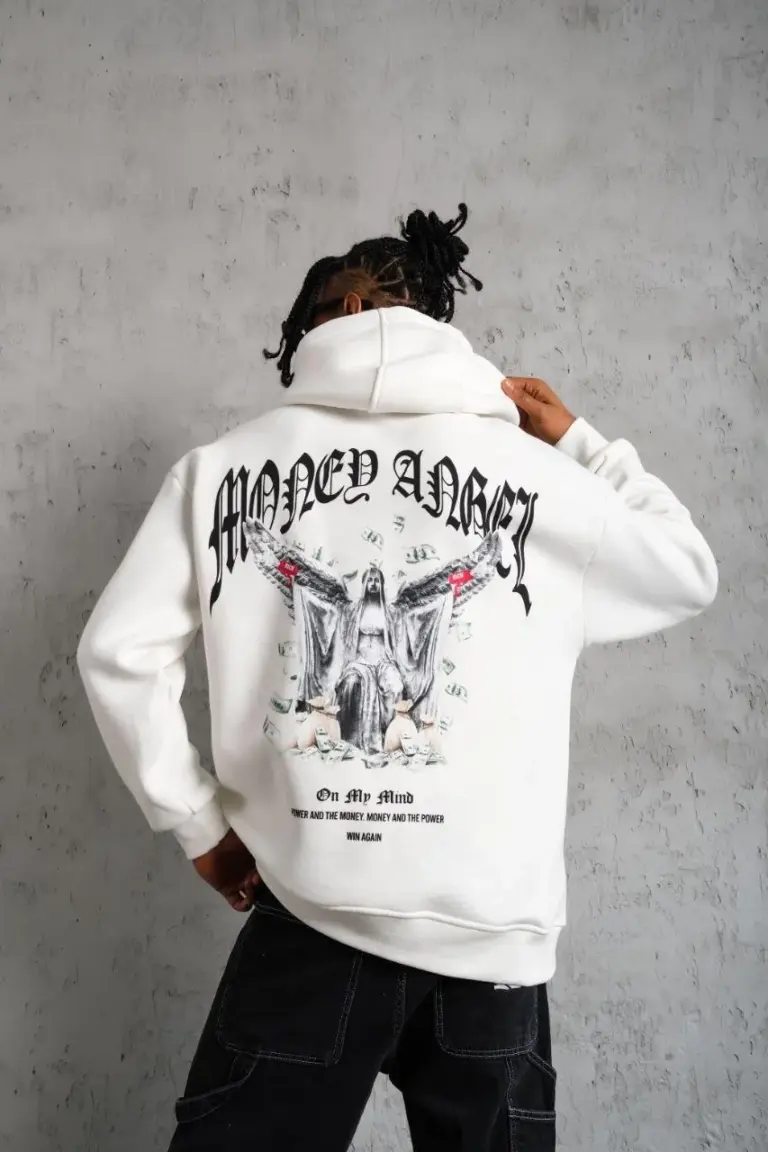 3 İplik Pamuklu Baskılı Kapüşonlu Cepli Sweatshirt Hoodie – Beyaz
