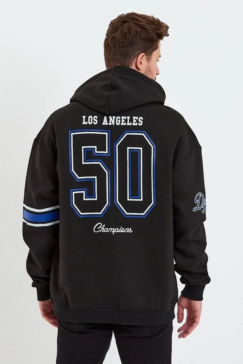 3 İplik Pamuklu Kapüşonlu Baskılı Cepli Oversize Sweatshirt Hoodie – Siyah