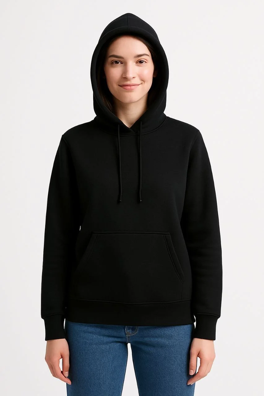 3 İplik Pamuklu Kapüşonlu Kanguru Cepli Sweatshirt hoodie – Siyah