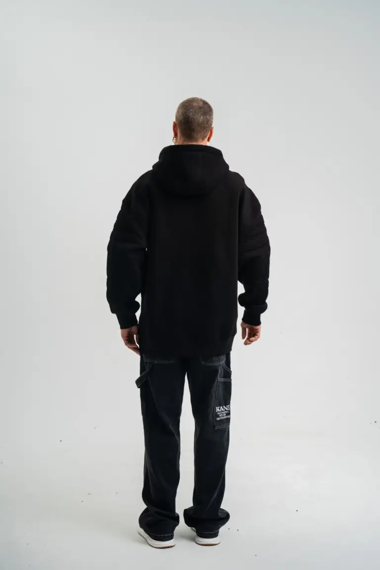 3 İplik Pamuklu Oversize Kapüşonlu Nakışlı Hoodie SweatShirt – Siyah