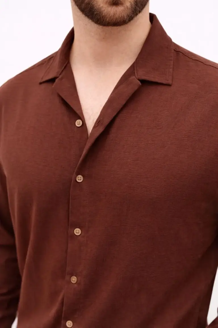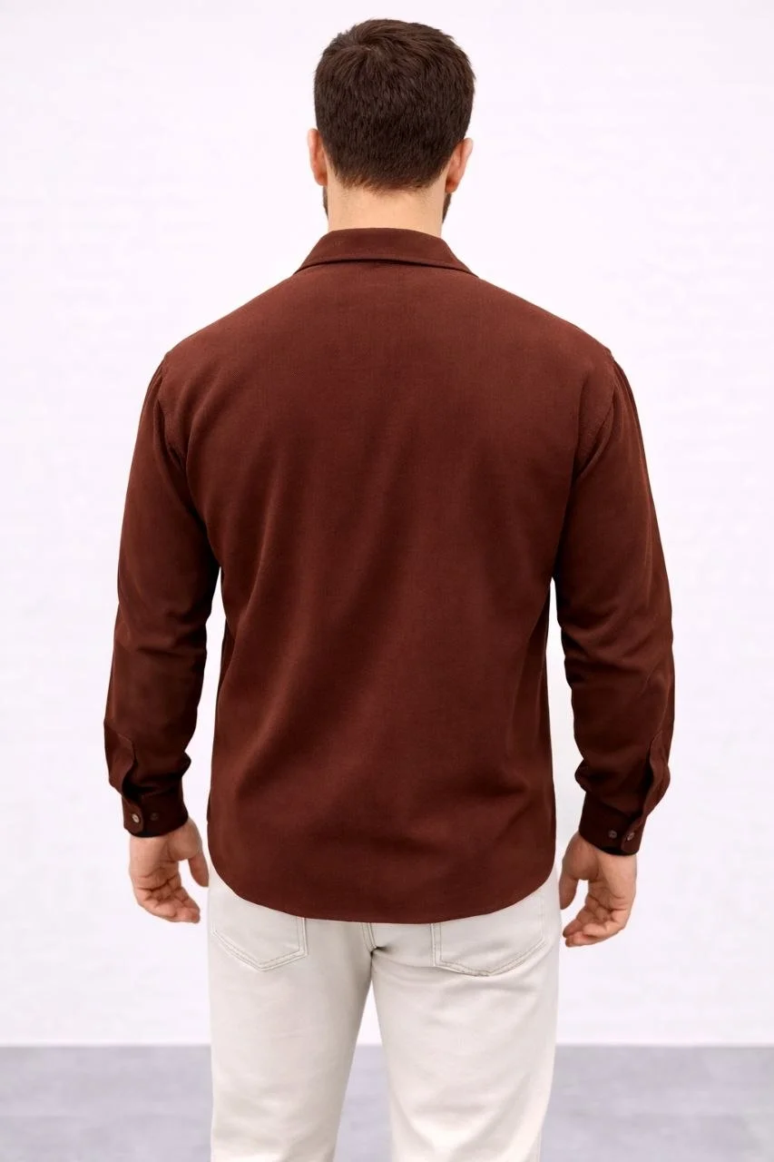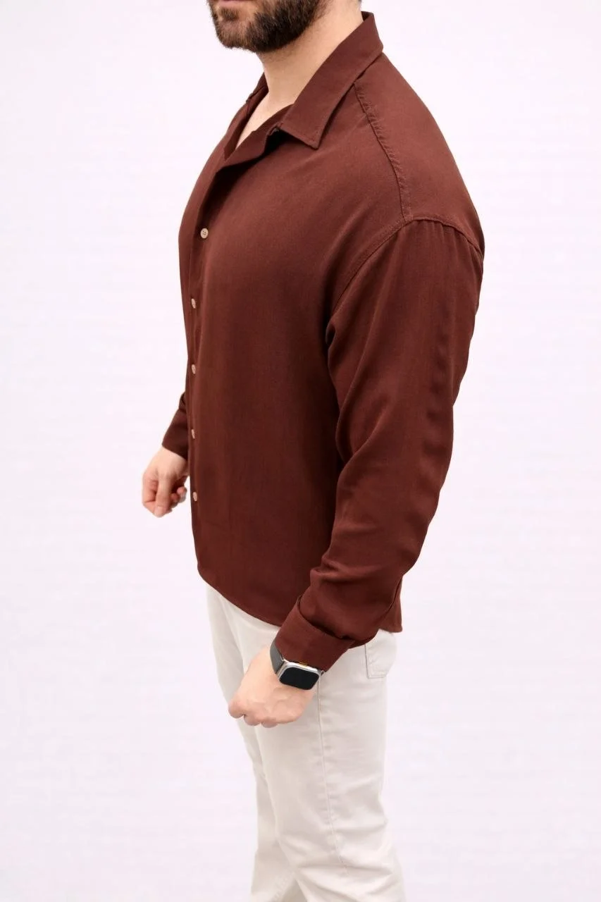 Aerobin Kumaş Oversize 4 Mevsim Uzun Kollu Rahat Kalıp Gömlek – Kahverengi