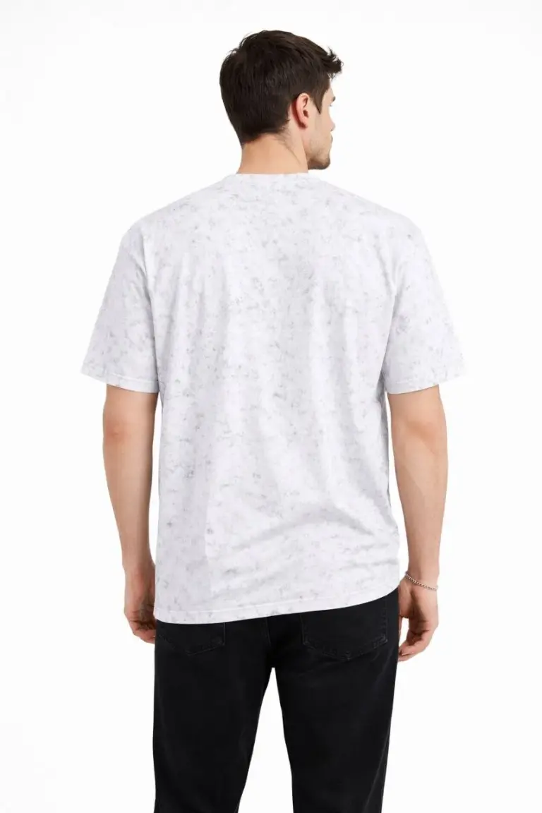 Asit Yıkama Bisiklet Yaka Kısa Kollu Oversize T-Shirt Tişört – Beyaz