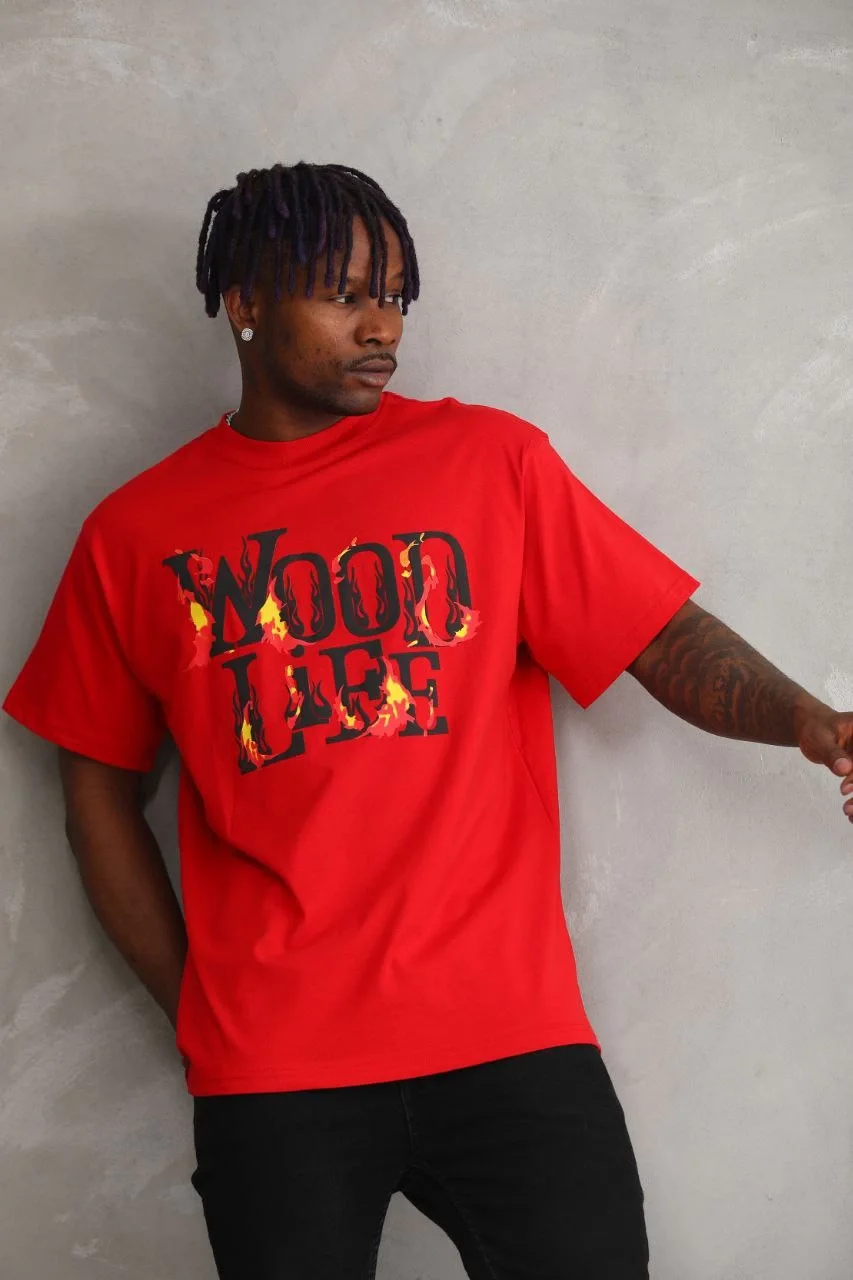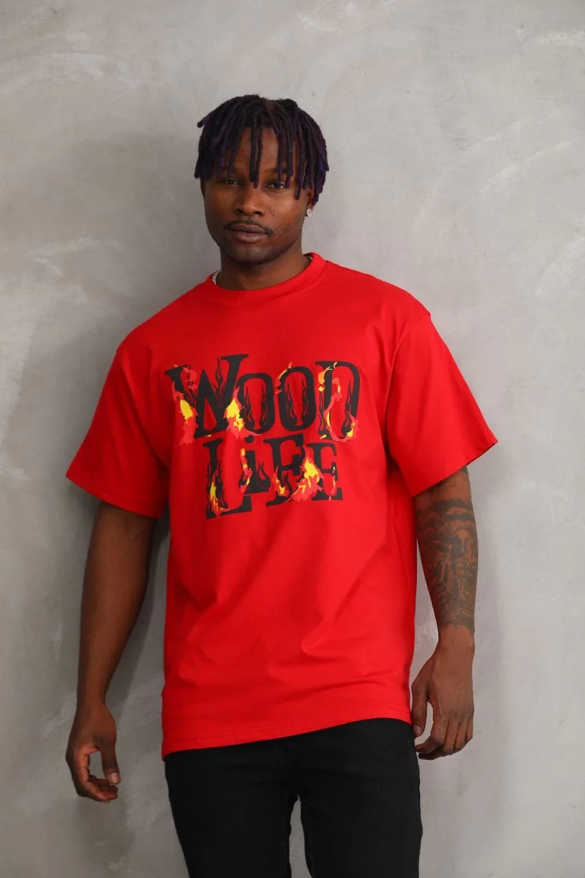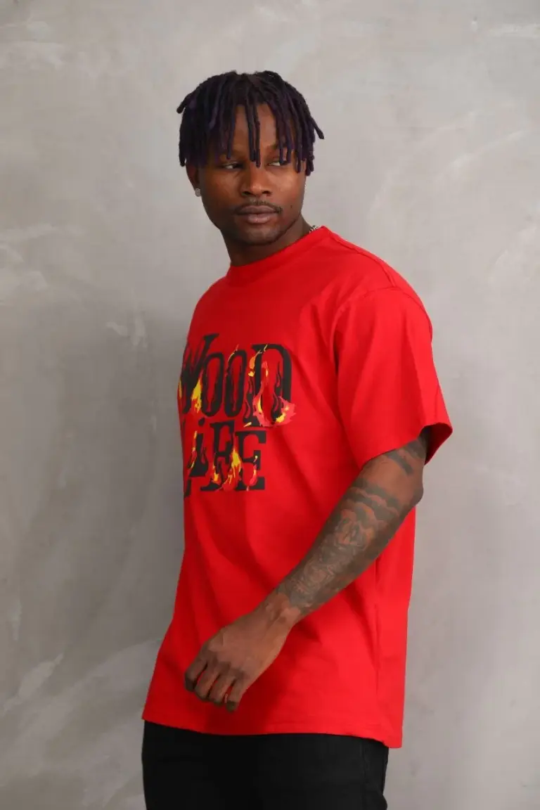Baskılı T-Shirt Kısa Kol Bisiklet Yaka Rahat Kalıp Tişört – Kırmızı