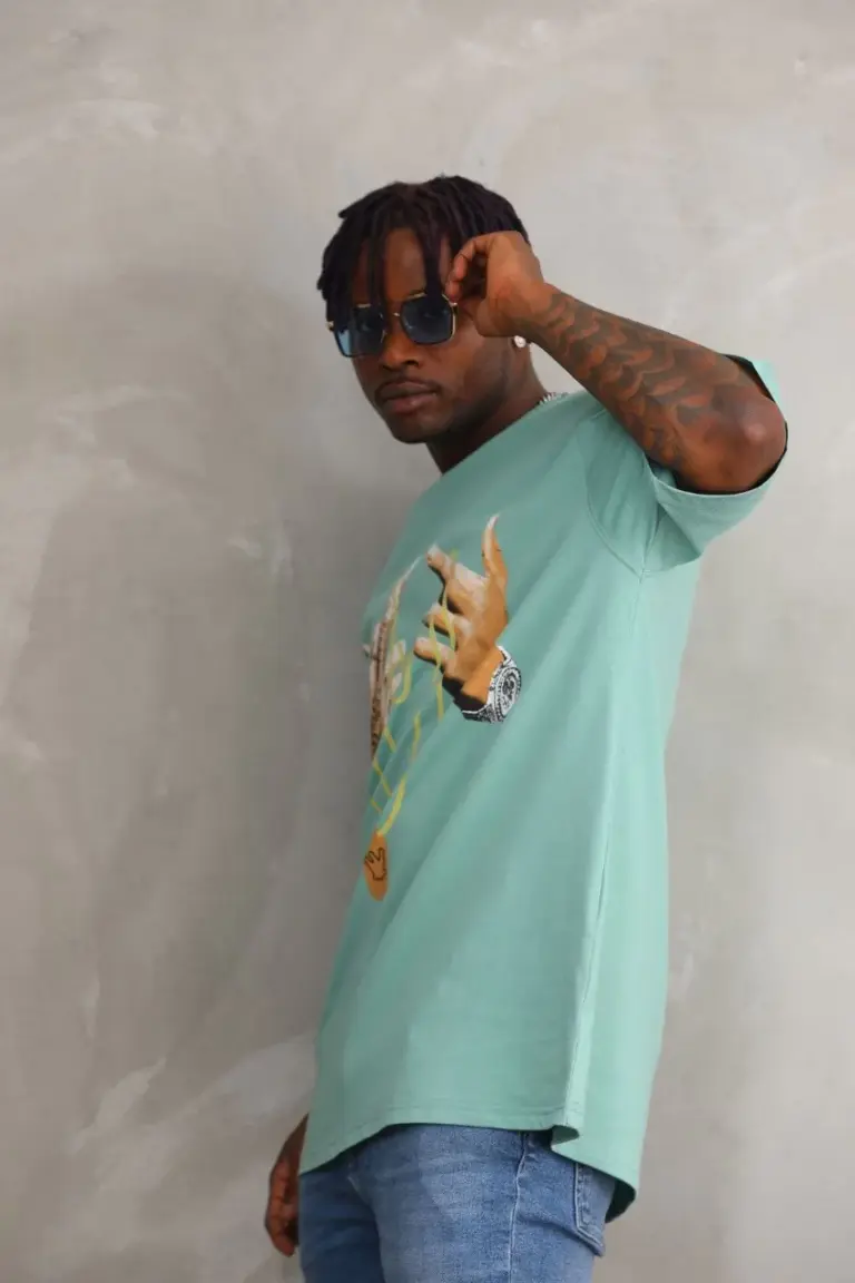 Baskılı T-Shirt Kısa Kol Bisiklet Yaka Rahat Kalıp Tişört – Mint Yeşili