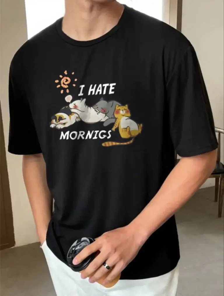 Baskılı T-Shirt Kısa Kol Bisiklet Yaka Regular Fit Rahat Kalıp Günlük Tişört – Siyah