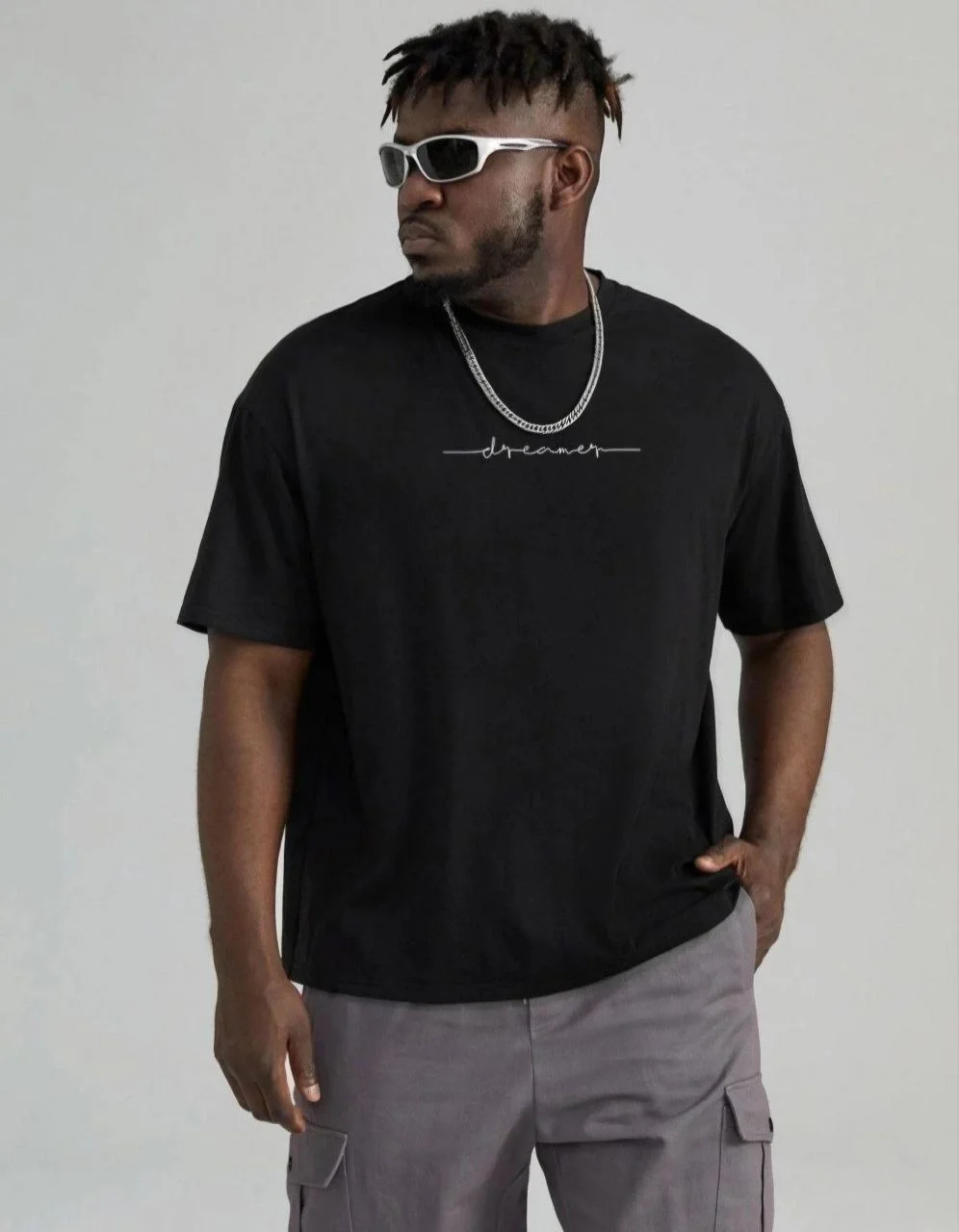 Baskılı T-Shirt Kısa Kol Bisiklet Yaka Regular Fit Rahat Kalıp Tişört – Siyah