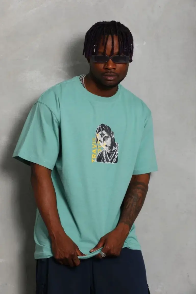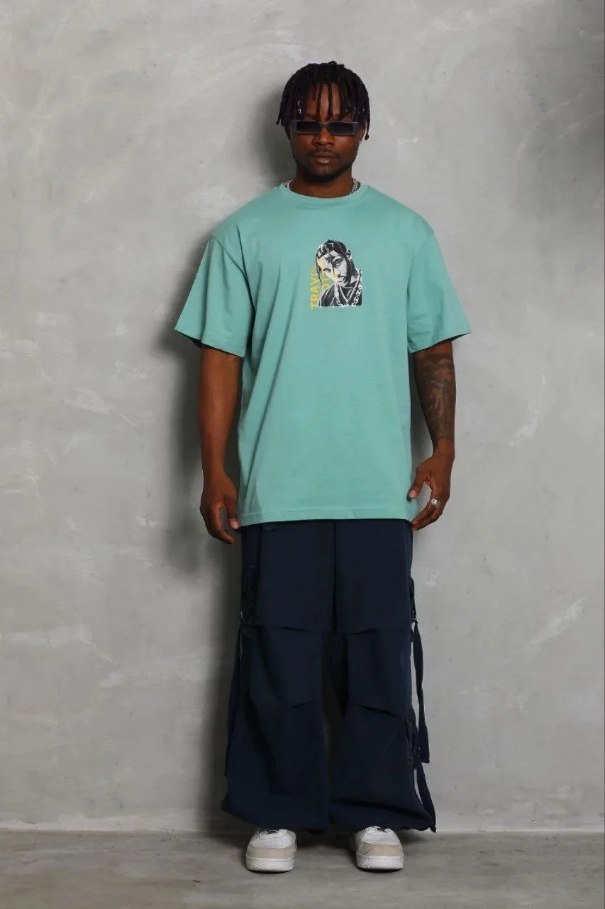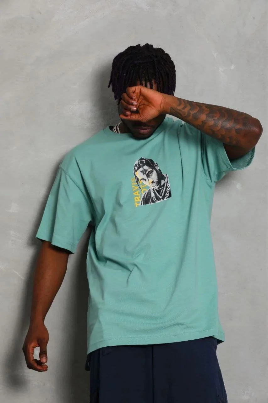 Baskılı T-Shirt Kısa Kol Bisiklet Yaka Regular Fit Tişört – Mint Yeşili