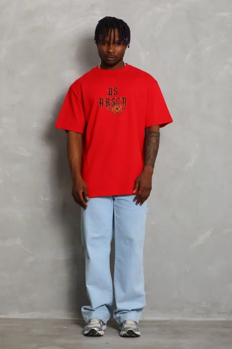 Baskılı Tişört Kısa Kol Bisiklet Yaka Oversize T-Shirt – Kırmızı