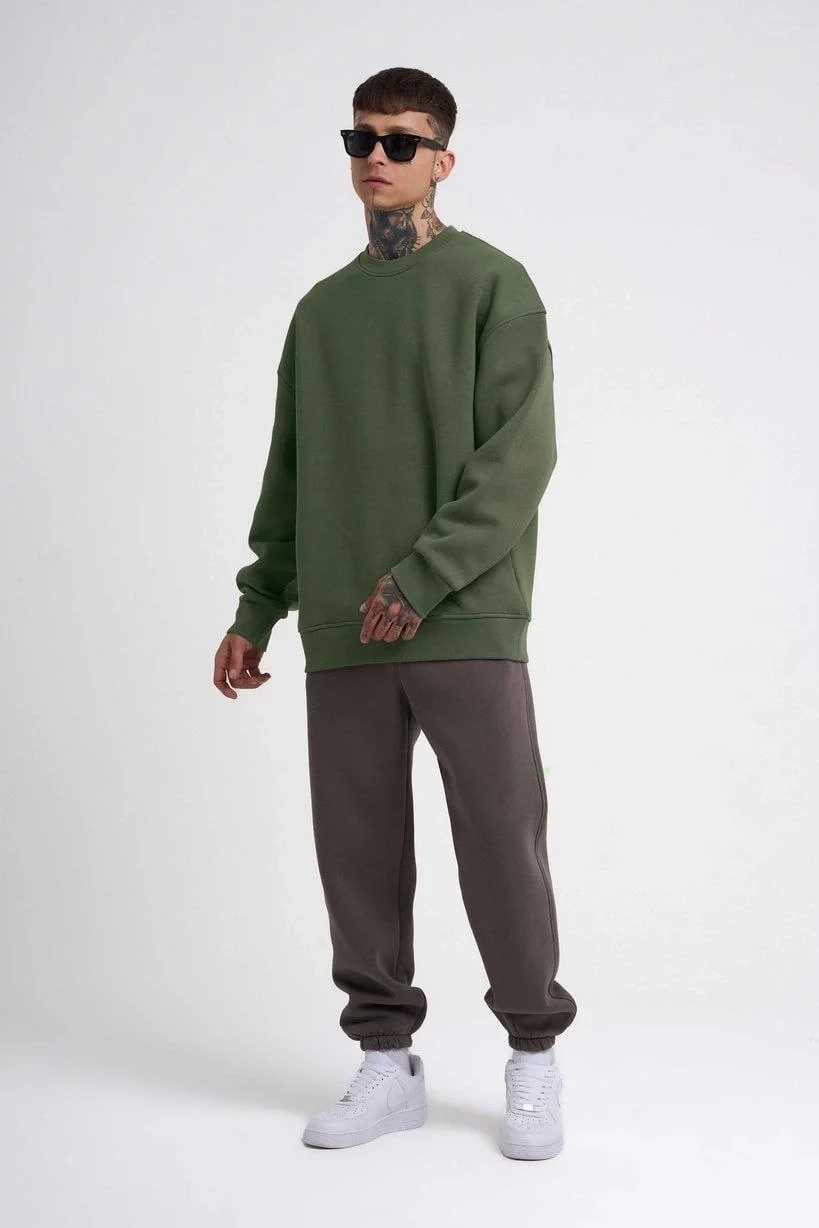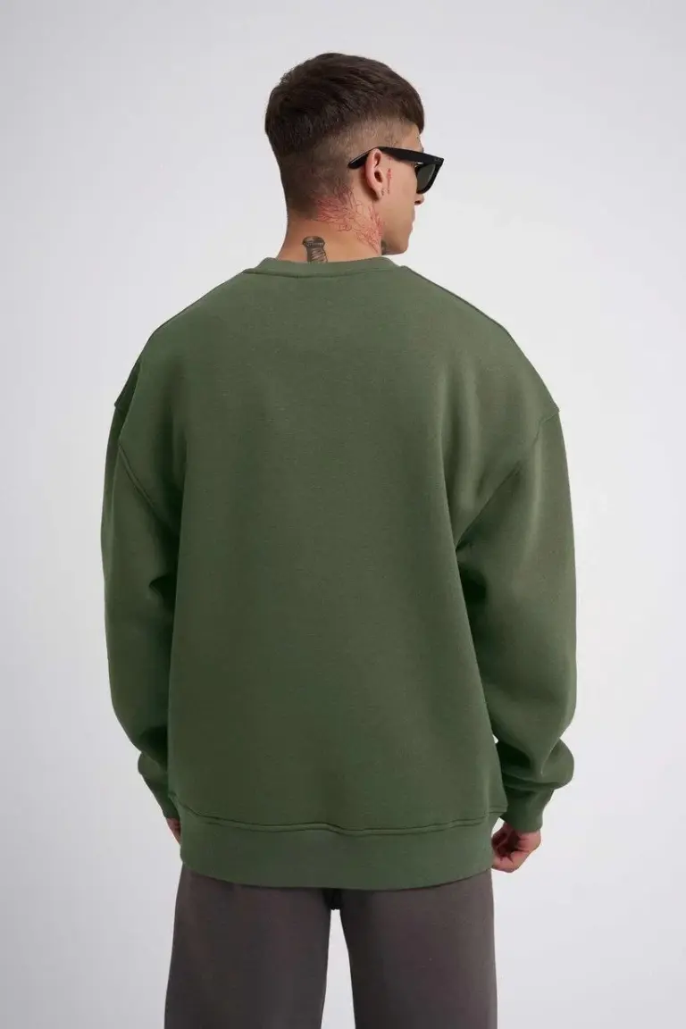 Bisikilet Yaka 3 İplik Pamuklu SweatShirt – Haki