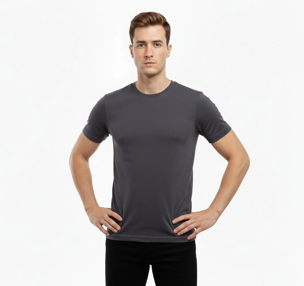 Bisiklet Yaka Slim Fit dar kesim Likralı Tişört – Füme