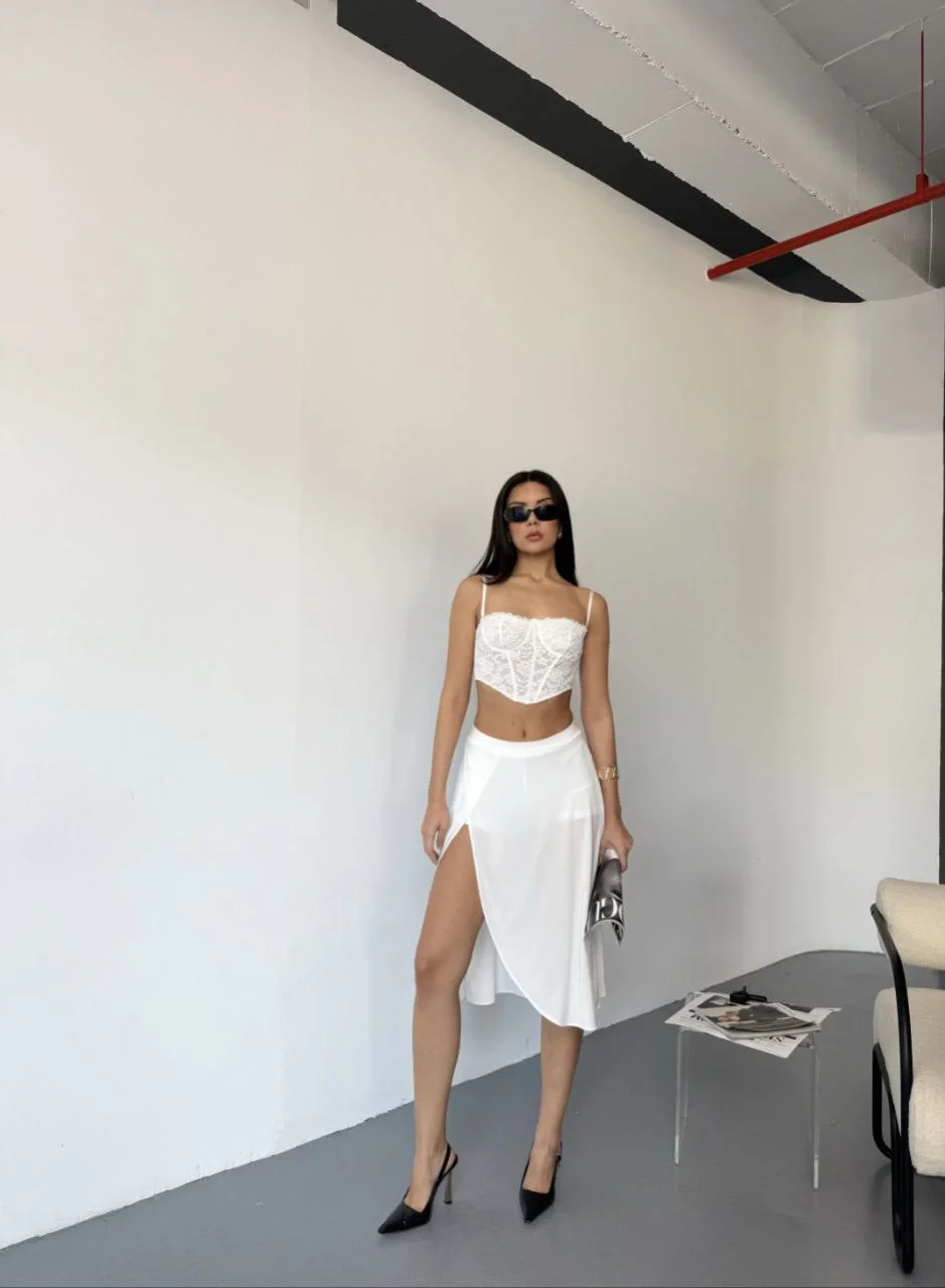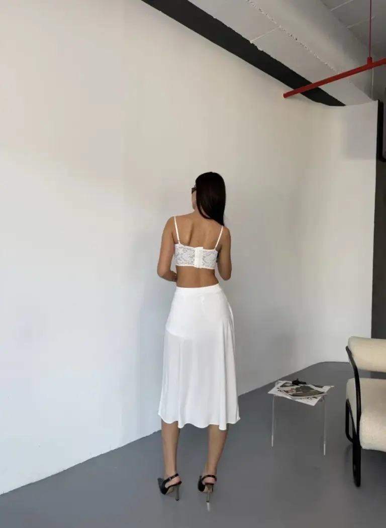 Çepli Şortlu Yırtmaçlı Etek – Beyaz