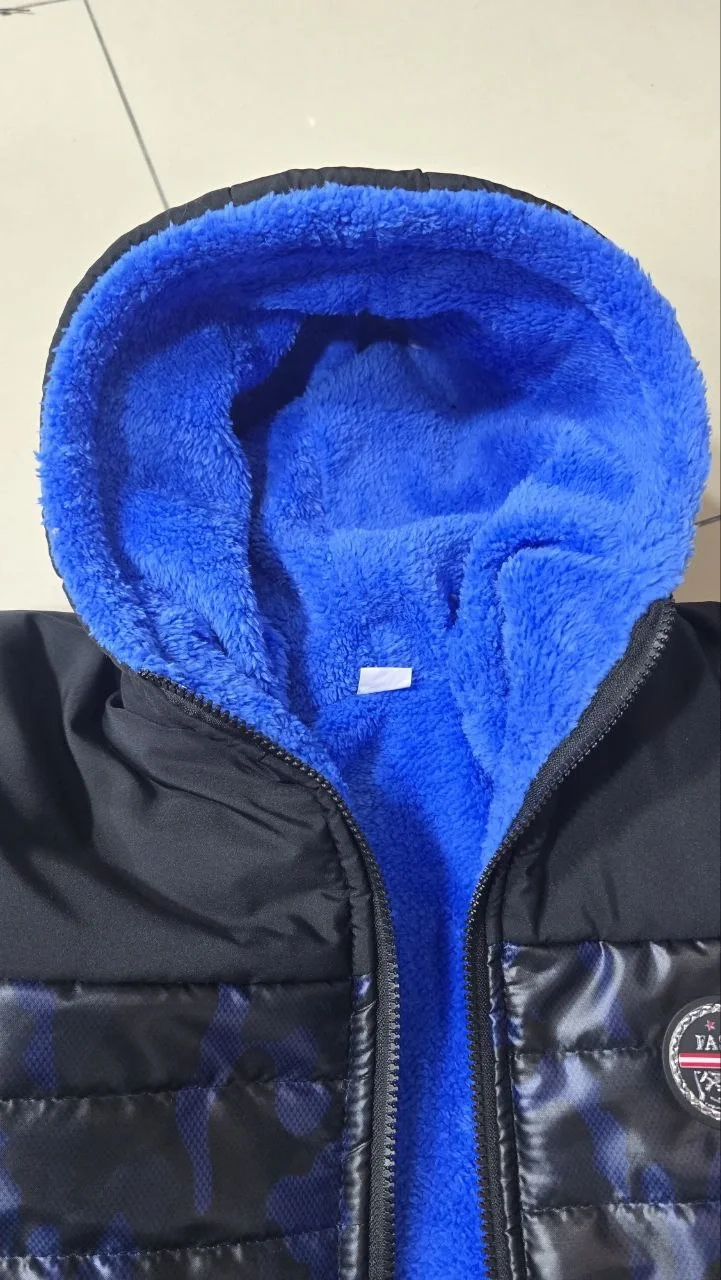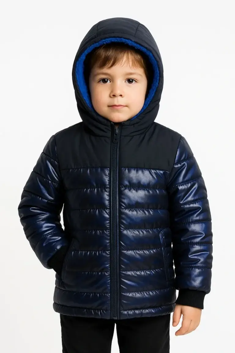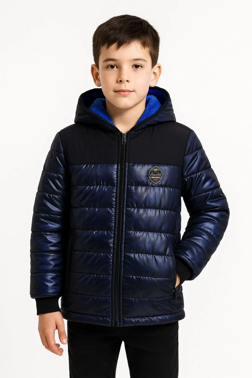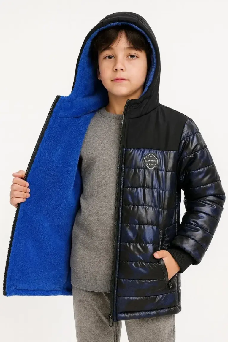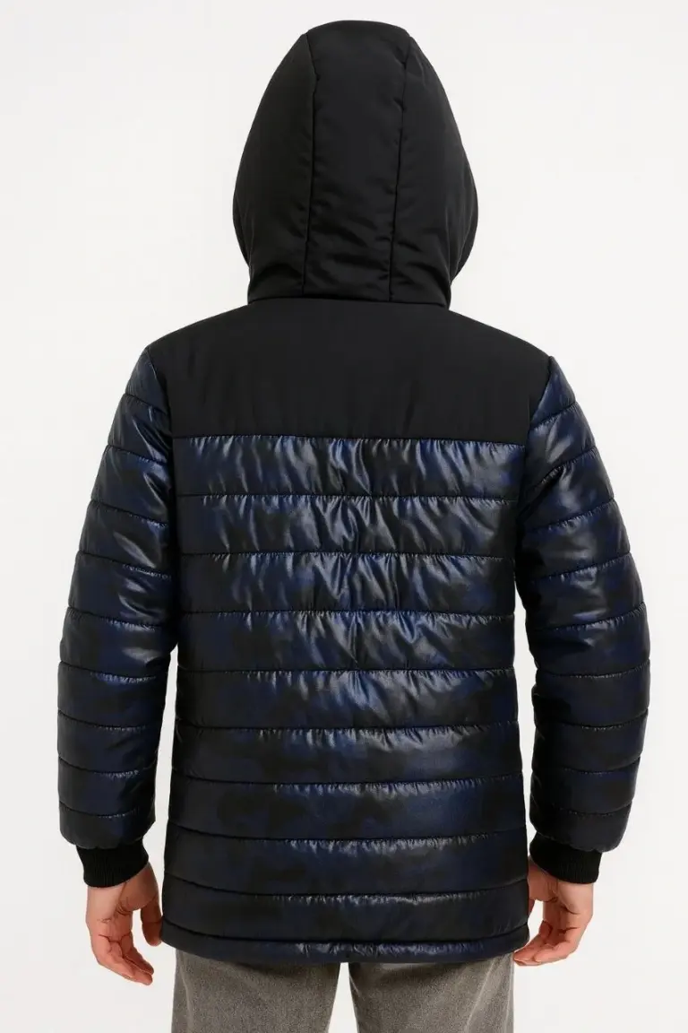 Çocuk Kamuflaj Desenli Peluş Astarlı Kapüşonlu Cepli Mont – Lacivert