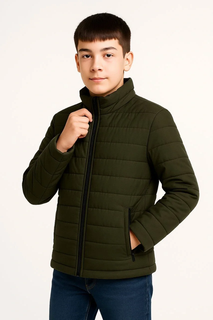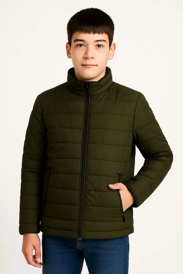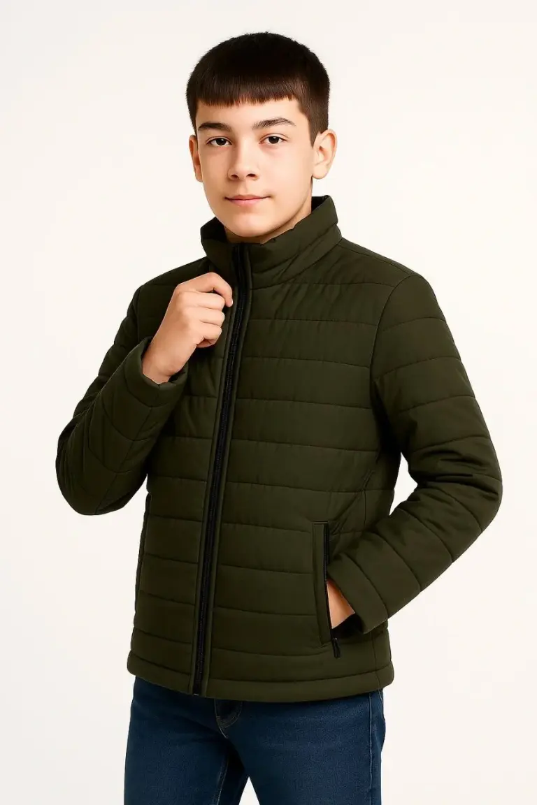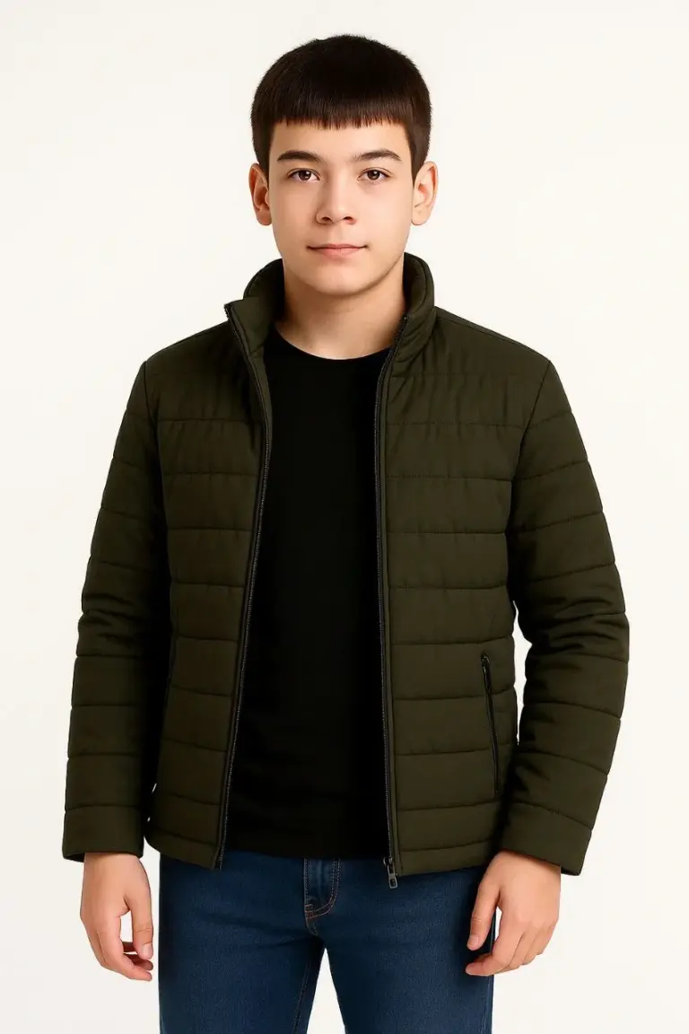 Çocuk Şişme İçi Elyaflı Fermuarlı Cepli Mont Su İtici Ceket – Haki