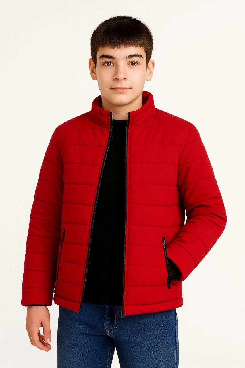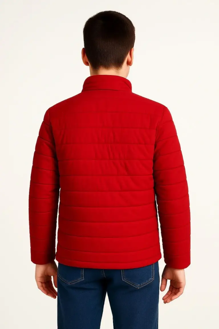 Çocuk Şişme İçi Elyaflı Fermuarlı Cepli Mont Su İtici Ceket – Kırmızı