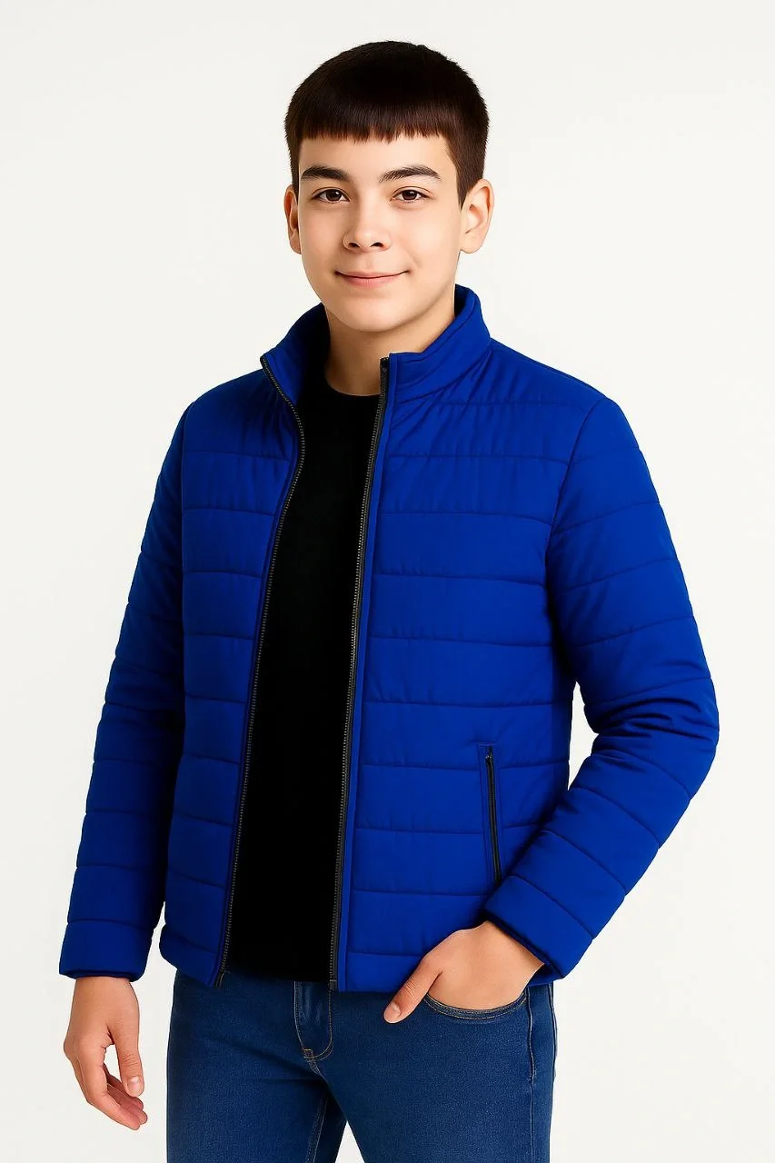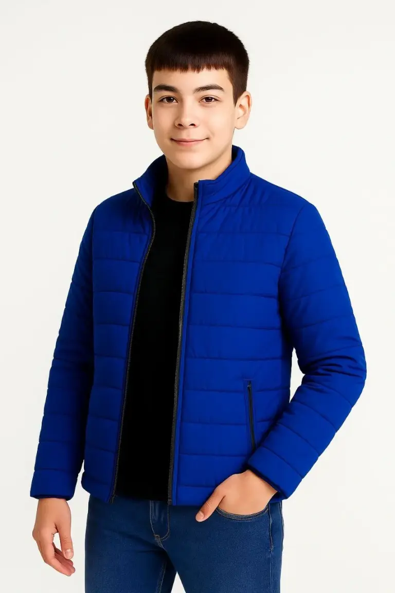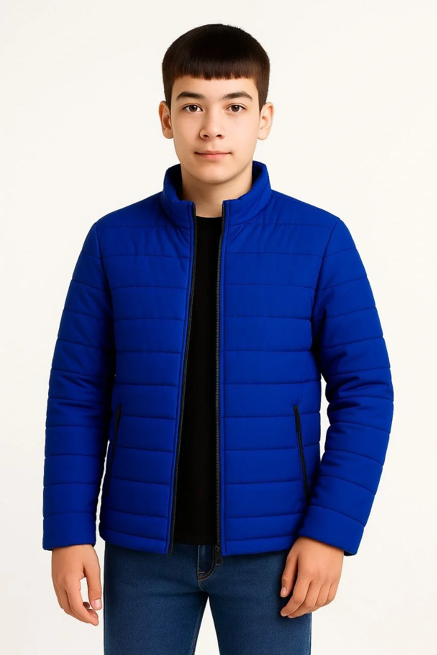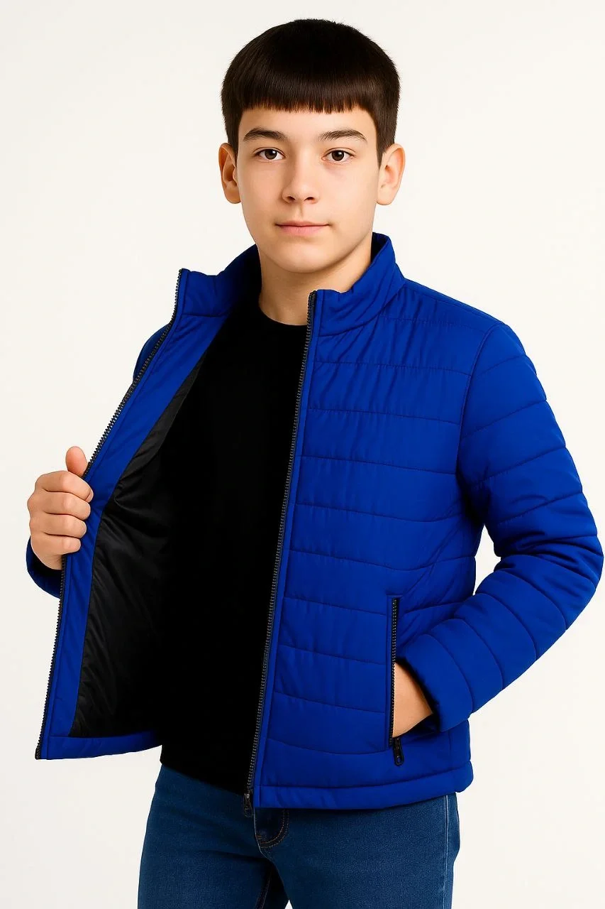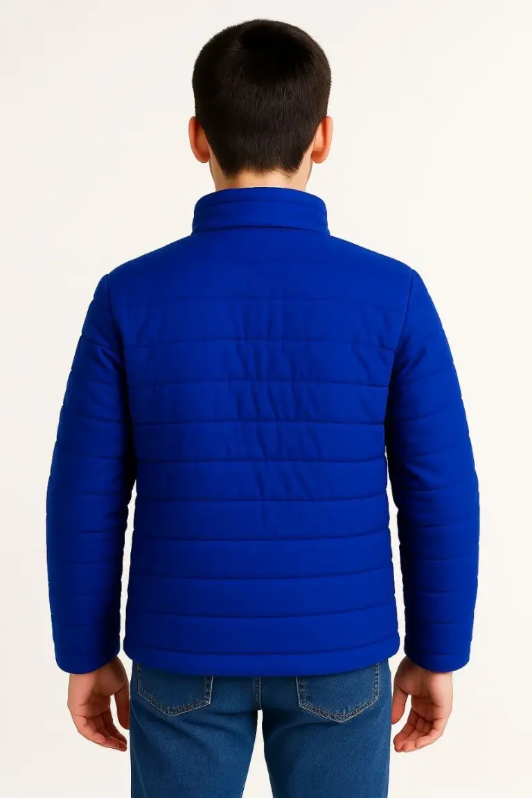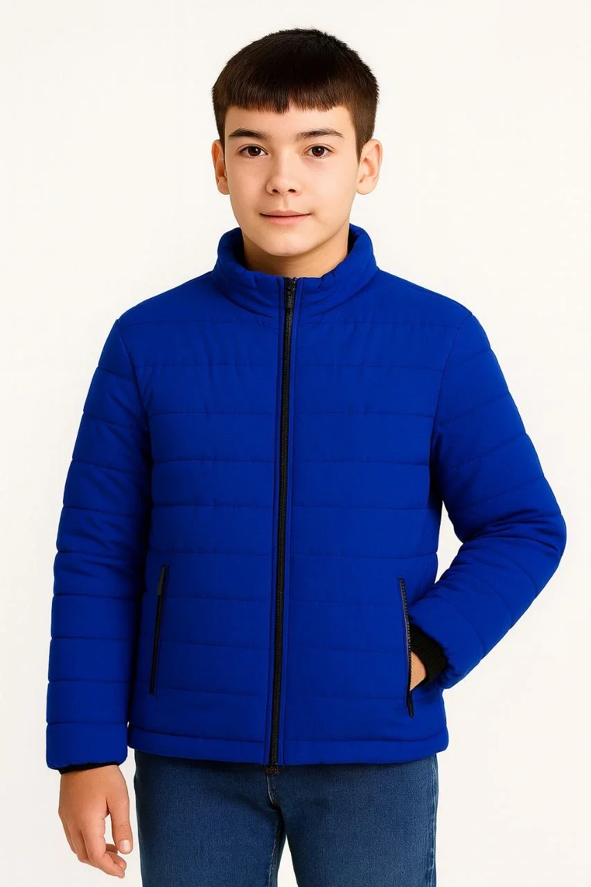 Çocuk Şişme İçi Elyaflı Fermuarlı Cepli Mont Su İtici Ceket -Saks Mavisii