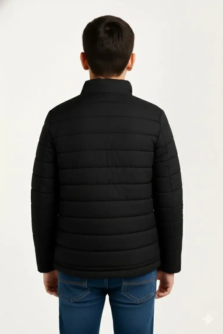 Çocuk Şişme İçi Elyaflı Fermuarlı Cepli Mont Su İtici Ceket – Siyah