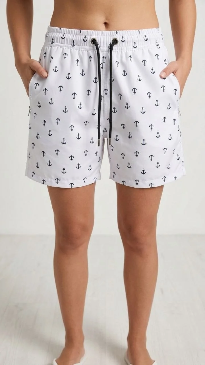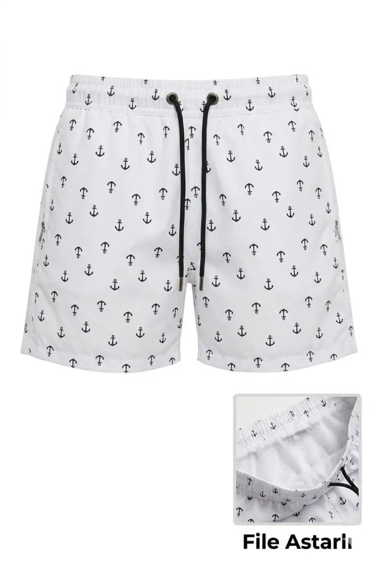 Deniz Şortu Fermuarlı Cepli File Astarlı Hızlı Kuruyan Premium – Beyaz