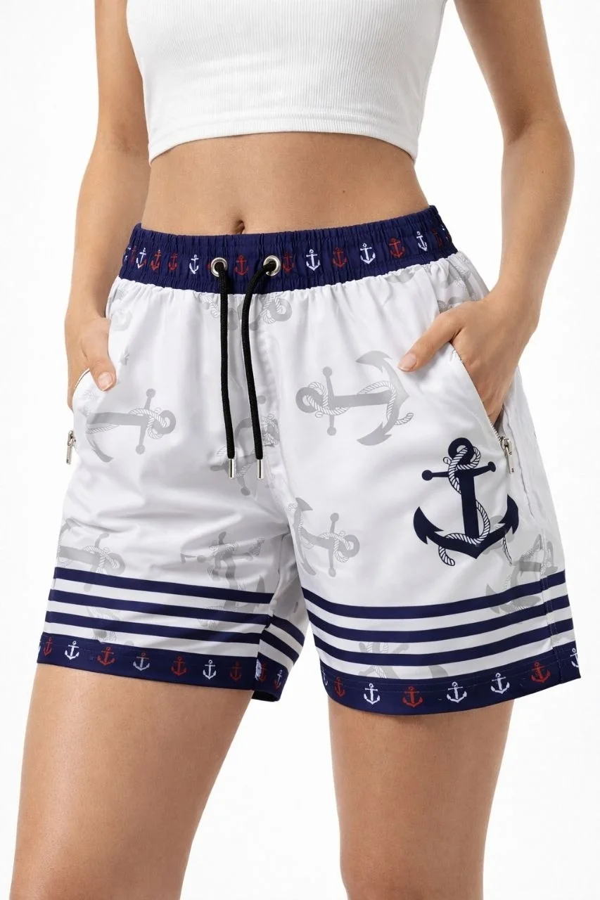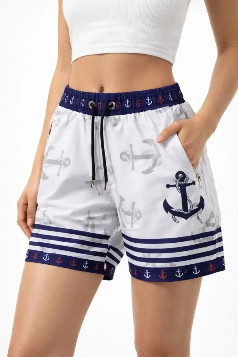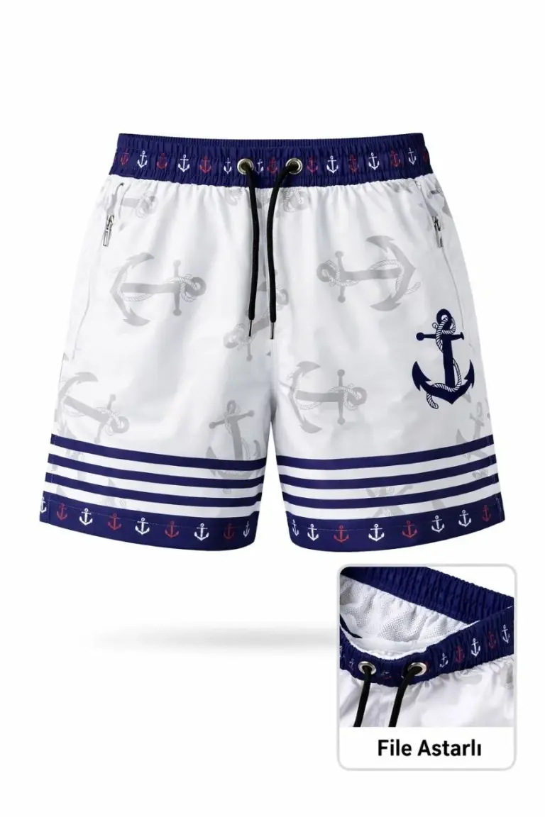Deniz Şortu Fermuarlı Cepli File Astarlı Hızlı Kuruyan Premium – Beyaz