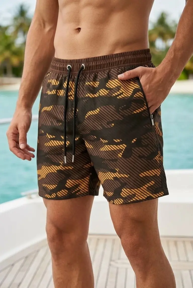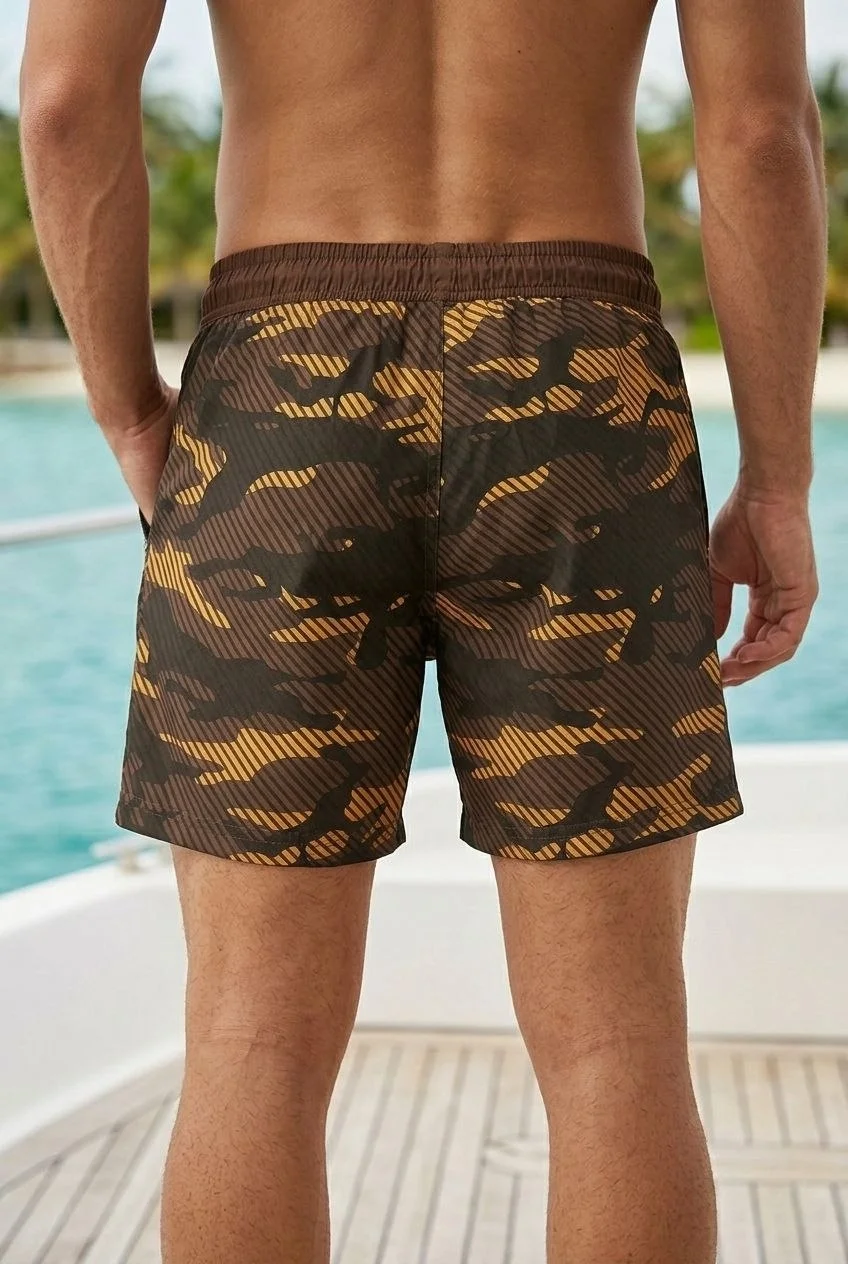 Deniz Şortu Fermuarlı Cepli File Astarlı Hızlı Kuruyan Premium – Kahverengi