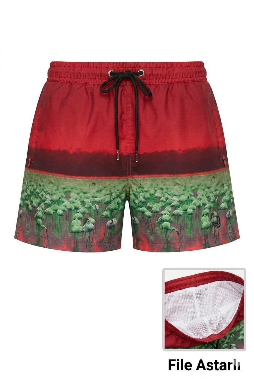 Deniz Şortu Fermuarlı Cepli File Astarlı Hızlı Kuruyan Premium – Kırmızı