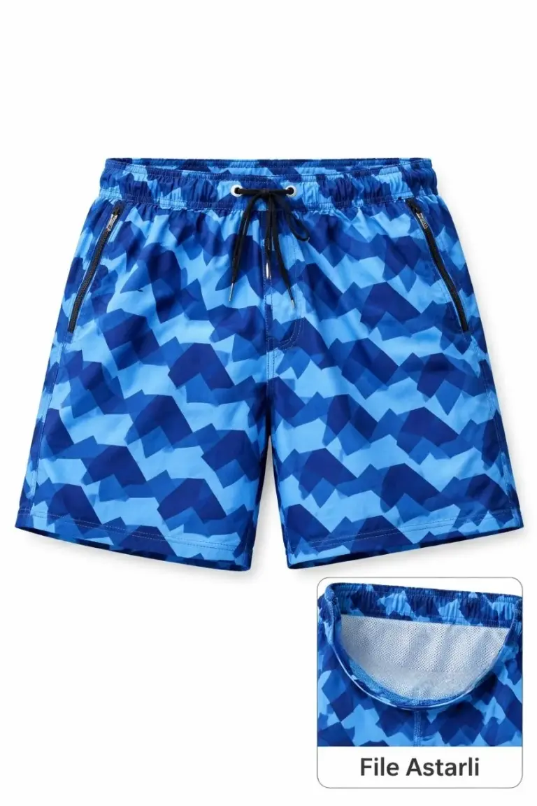 Deniz Şortu Fermuarlı Cepli File Astarlı Hızlı Kuruyan Premium – Mavi