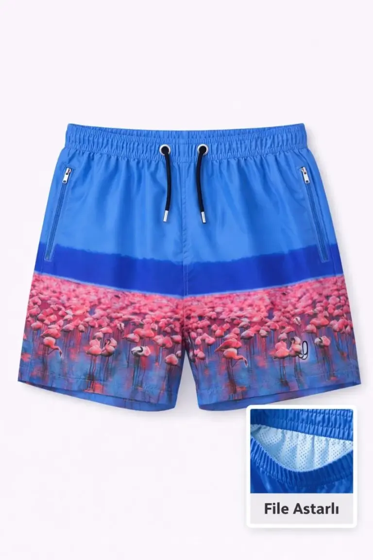 Deniz Şortu Fermuarlı Cepli File Astarlı Hızlı Kuruyan Premium – Mavi