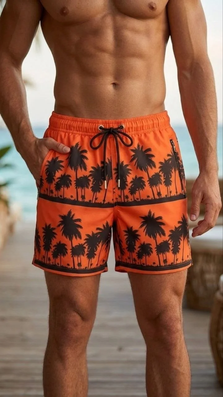 Deniz Şortu Fermuarlı Cepli File Astarlı Hızlı Kuruyan Premium – Turuncu