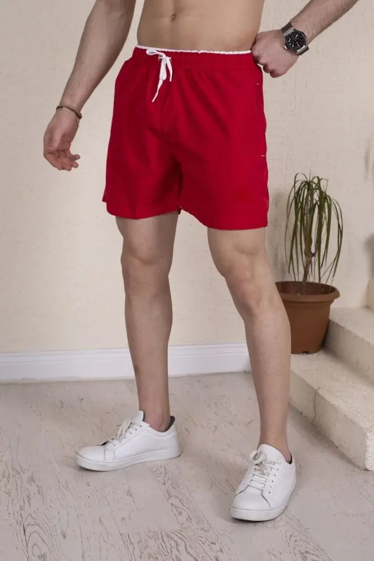 Deniz Şortu Fermuarlı Cepli File Astarlı – Kırmızı