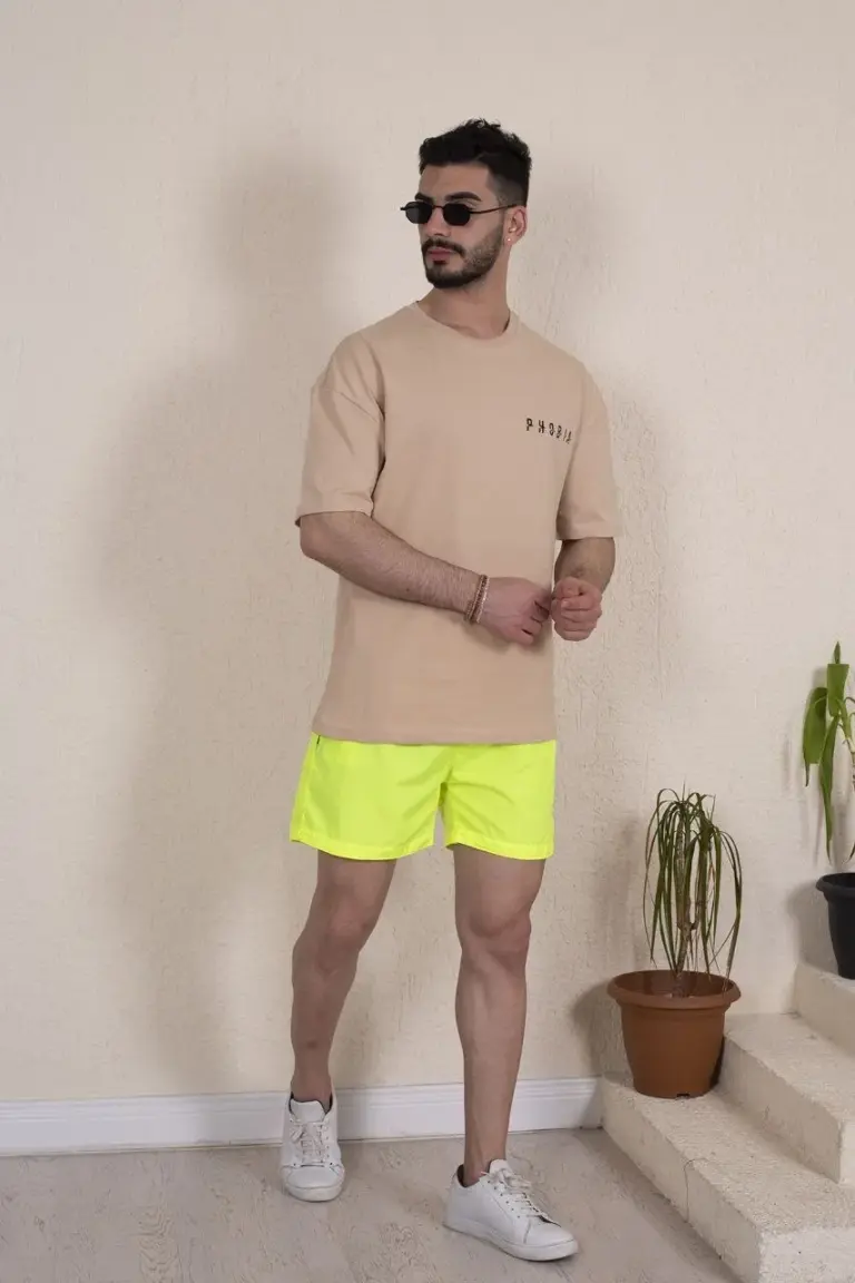 Deniz Şortu Fermuarlı Cepli File Astarlı – Neon Yeşili