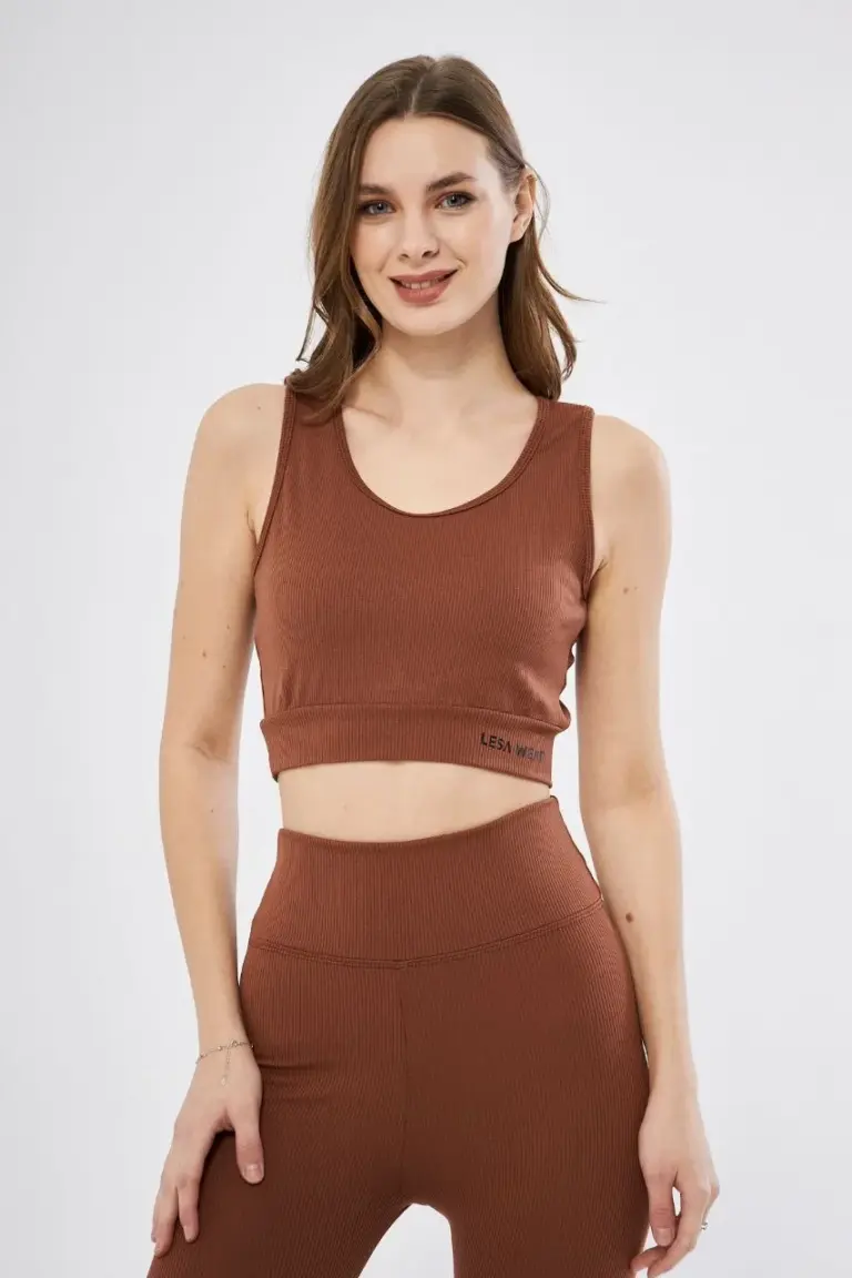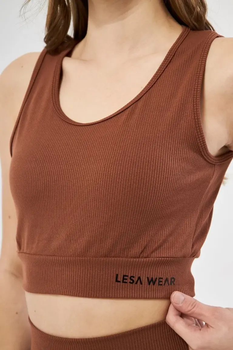 Fitilli Baskılı Crop – Kahve
