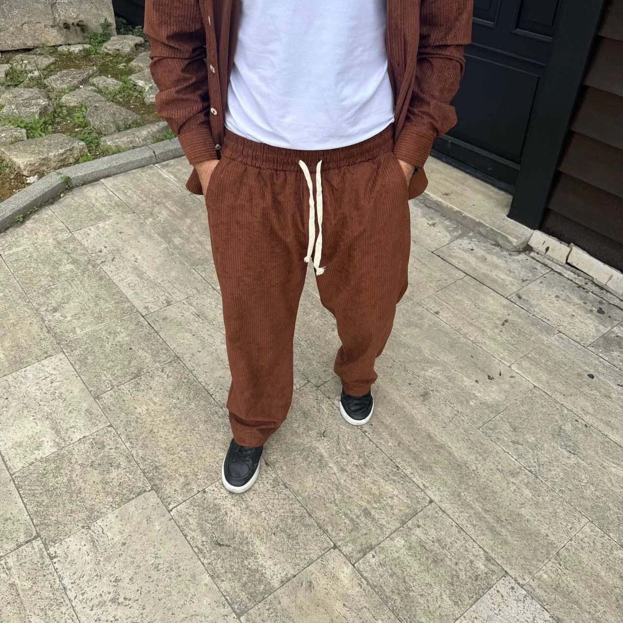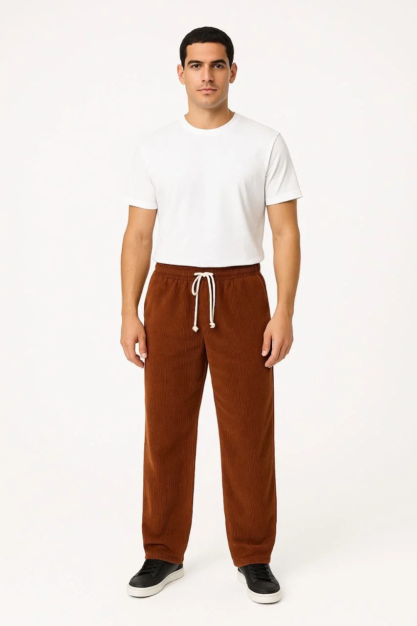 Fitilli Kadife Cepli Buggy Pantolon Oversize Rahat Kalıp – Kahverengi