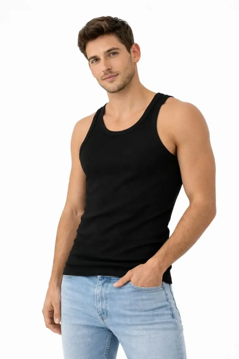 Fitilli Likralı Kaşkorse Atlet Vücuda Oturan Basic Şıklık – Siyah