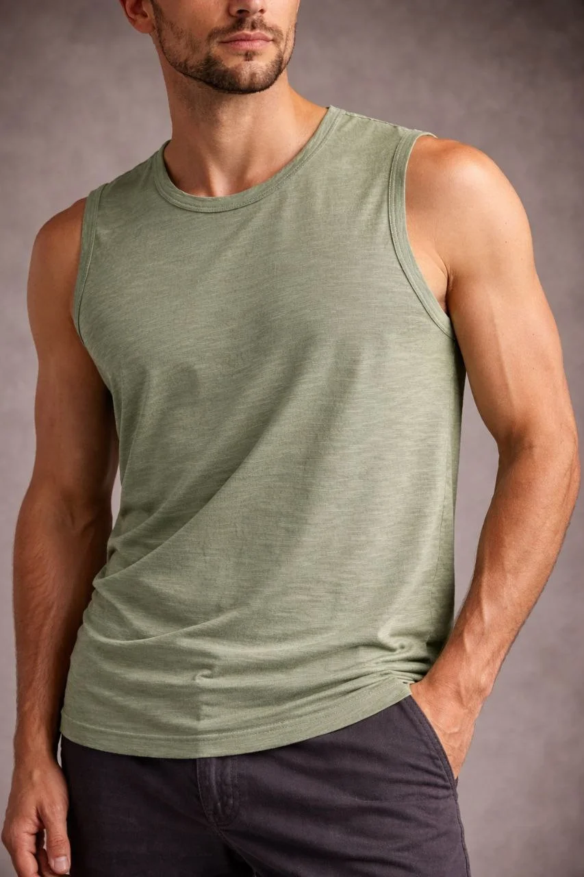 Flamlı Kumaş Kolsuz Atlet Günlük Fitness Spor T-Shirt – Mint Yeşili