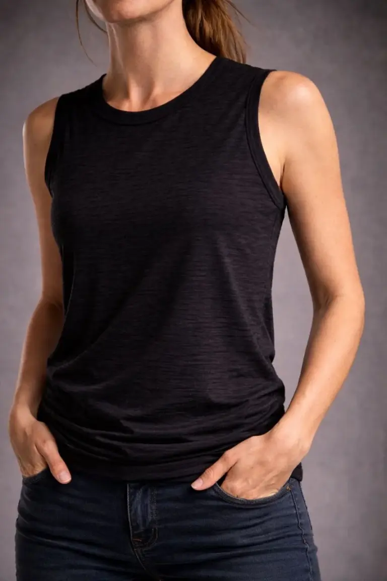 Flamlı Kumaş Kolsuz Atlet Günlük Fitness Spor T-Shirt – Siyah