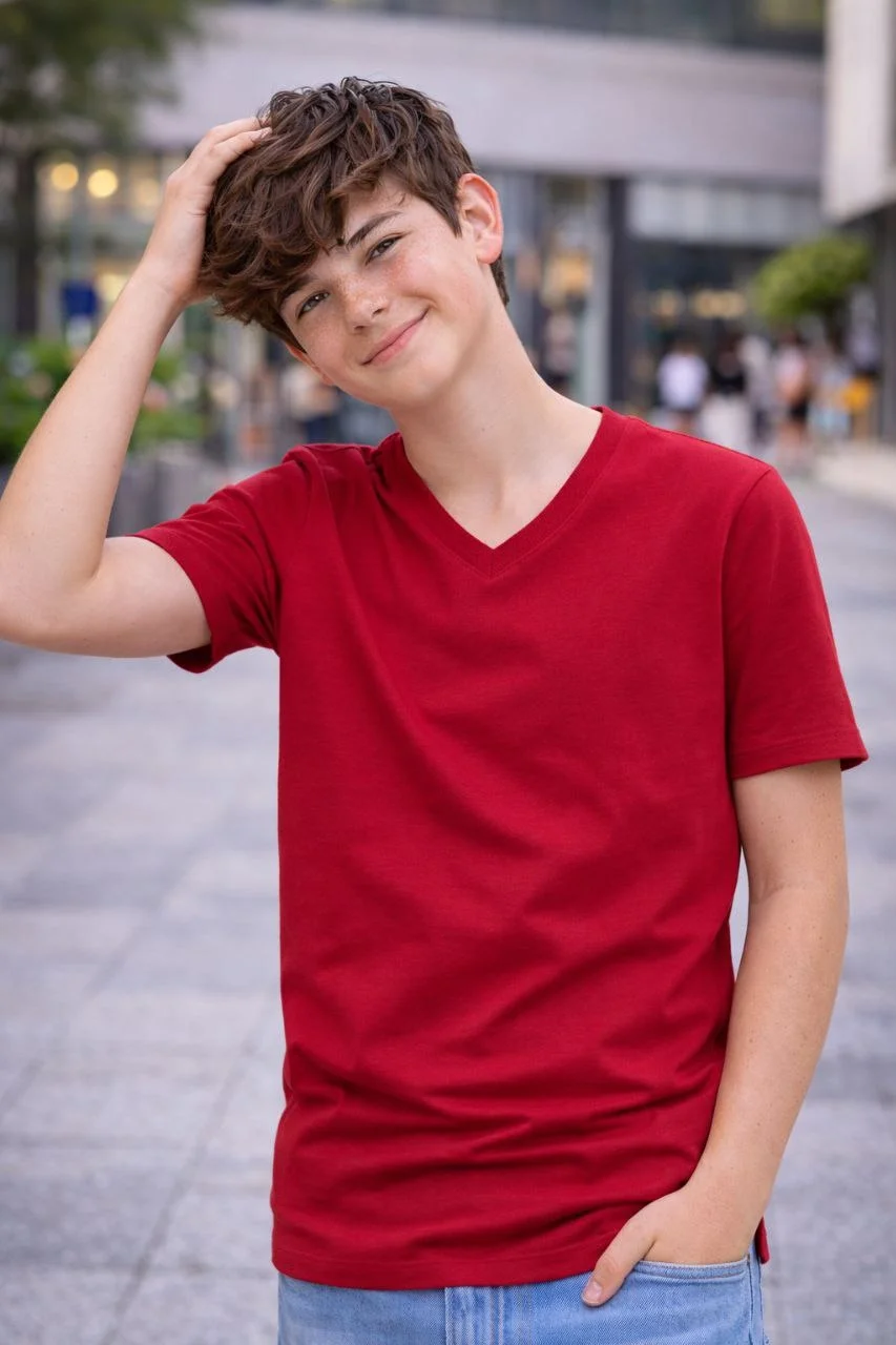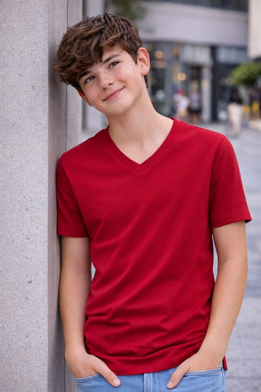 Genç Erkek Çocuk V Yaka Tişört Model – Bordo