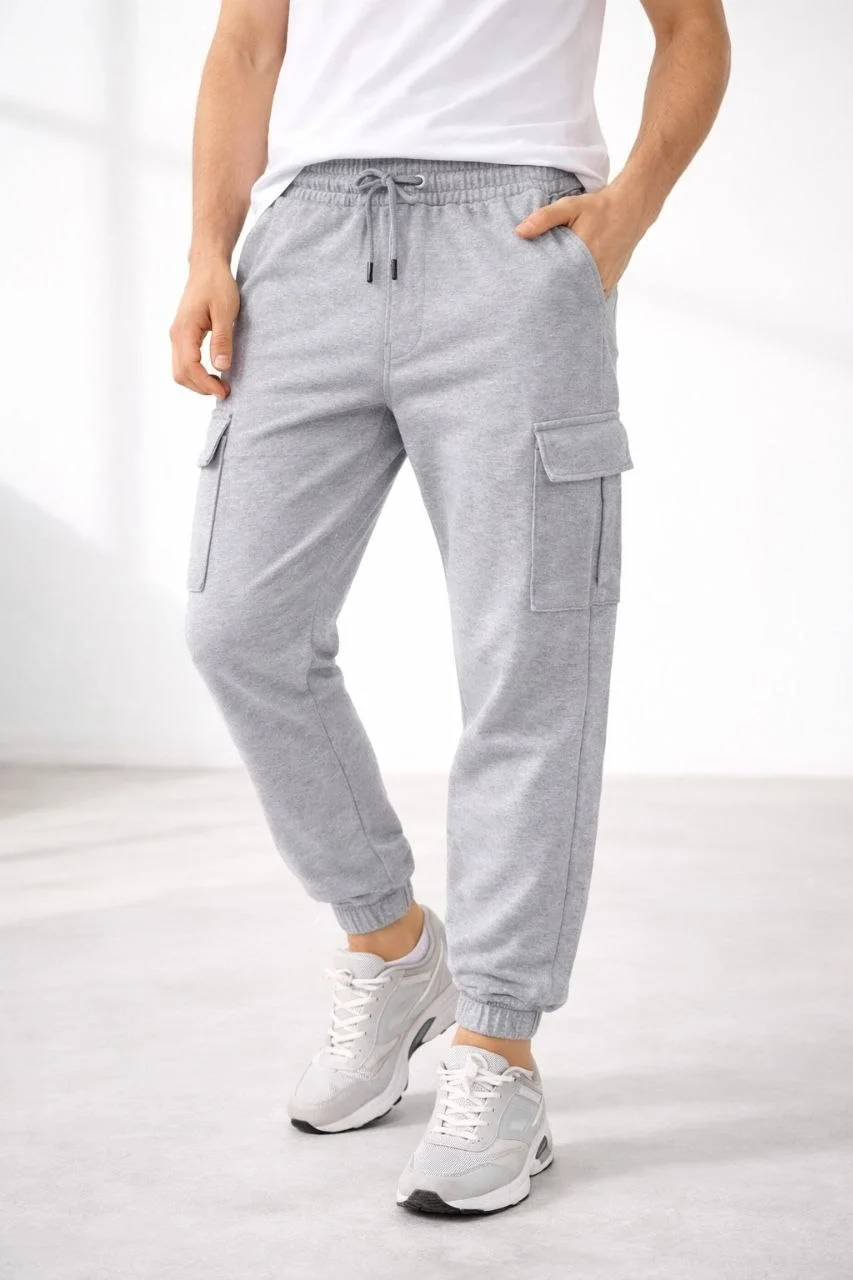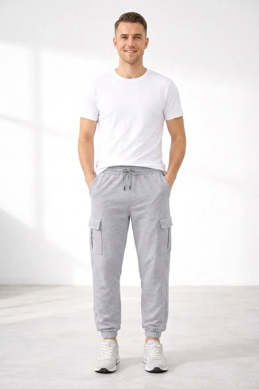 Jogger Eşofman Altı Kargo Cepli Lastikli Paça Spor Pantolon – Gri