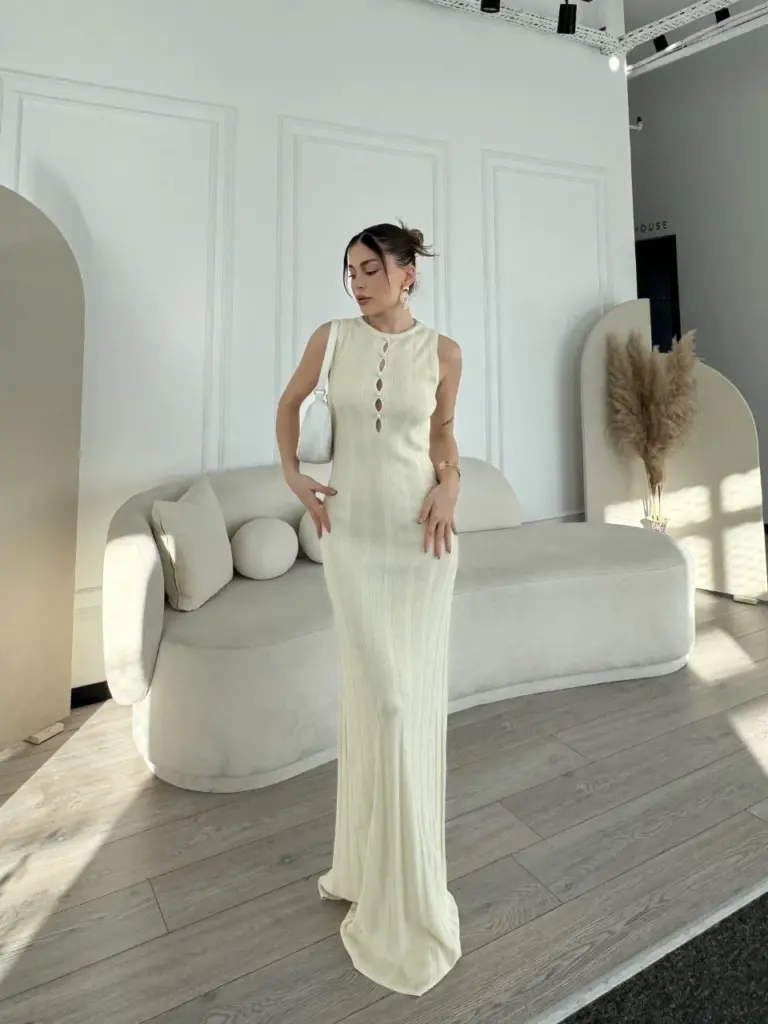 | Detay | Kollsuz uzun Kalın Fitiili Elbise |