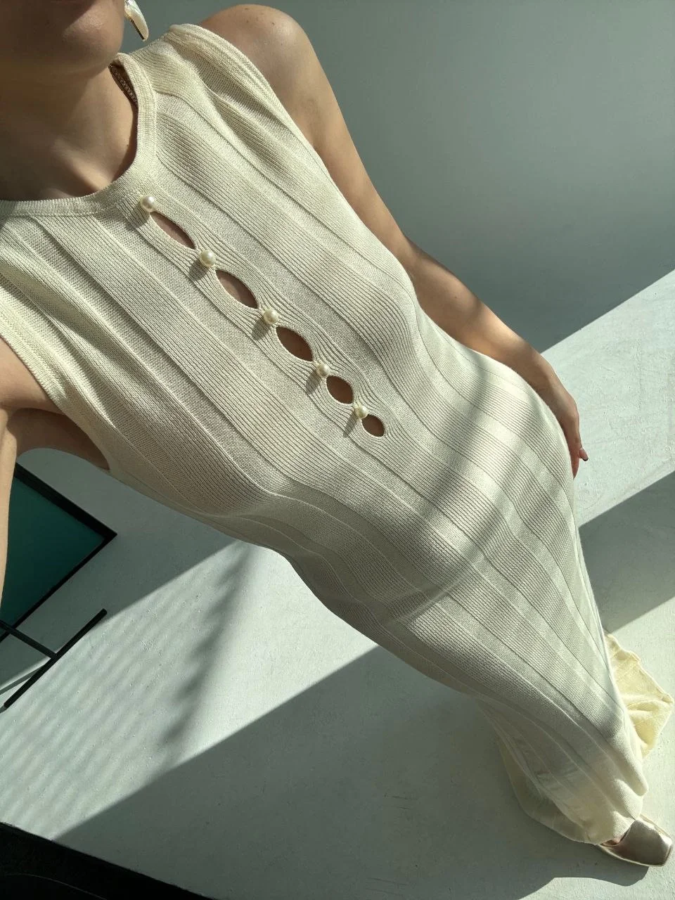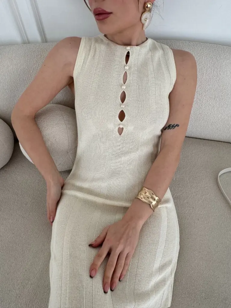 Kalın Fitilli Uzun Triko Elbise – Kırık Beyaz