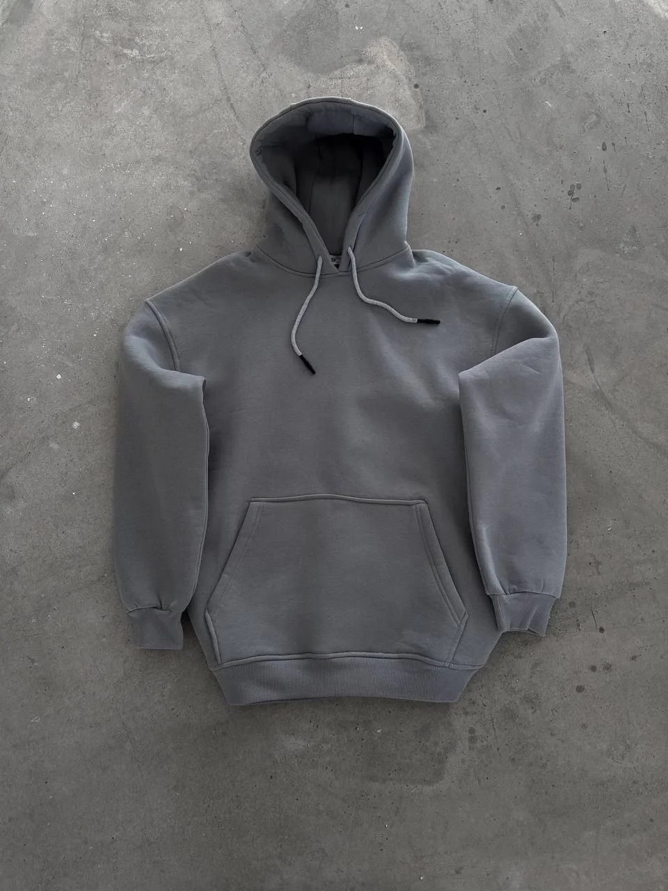Kapüşonlu Kanguru Cepli 3 İplik Pamuklu Oversize Hoodie Sweatshirt – Boyalı Gri