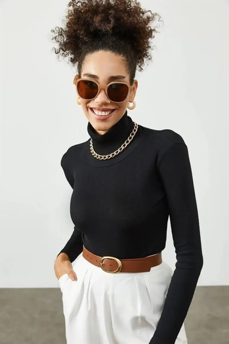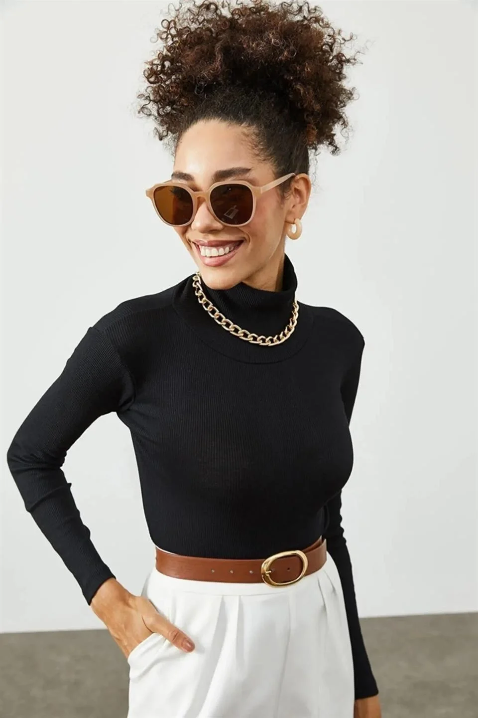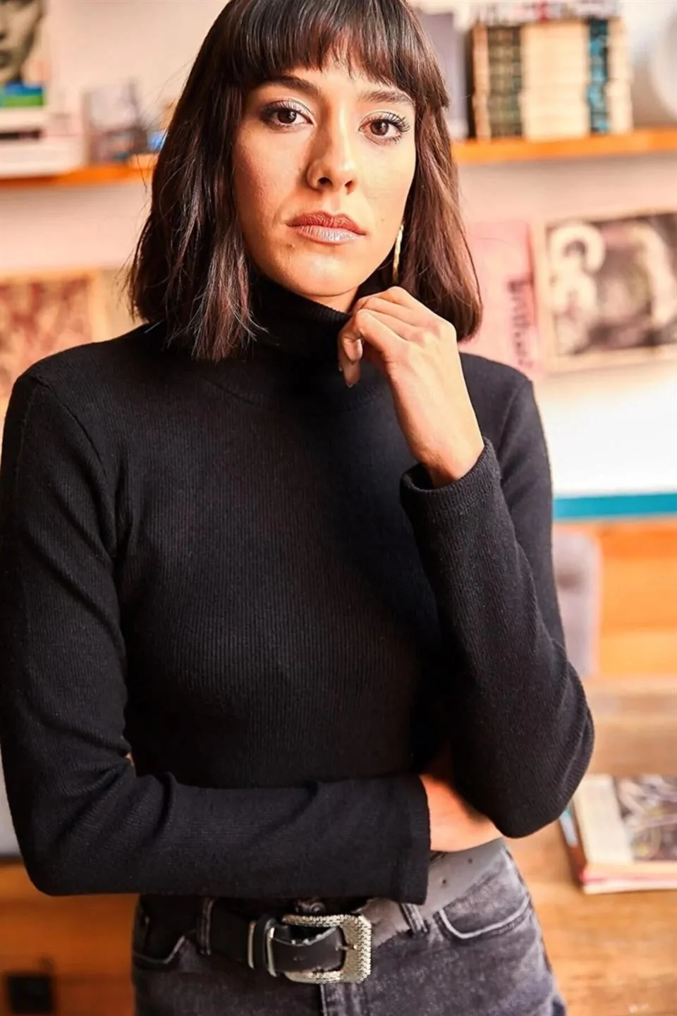 Kaşkorse Boğazlı Full Likralı Fitilli Body Kazak – Siyah