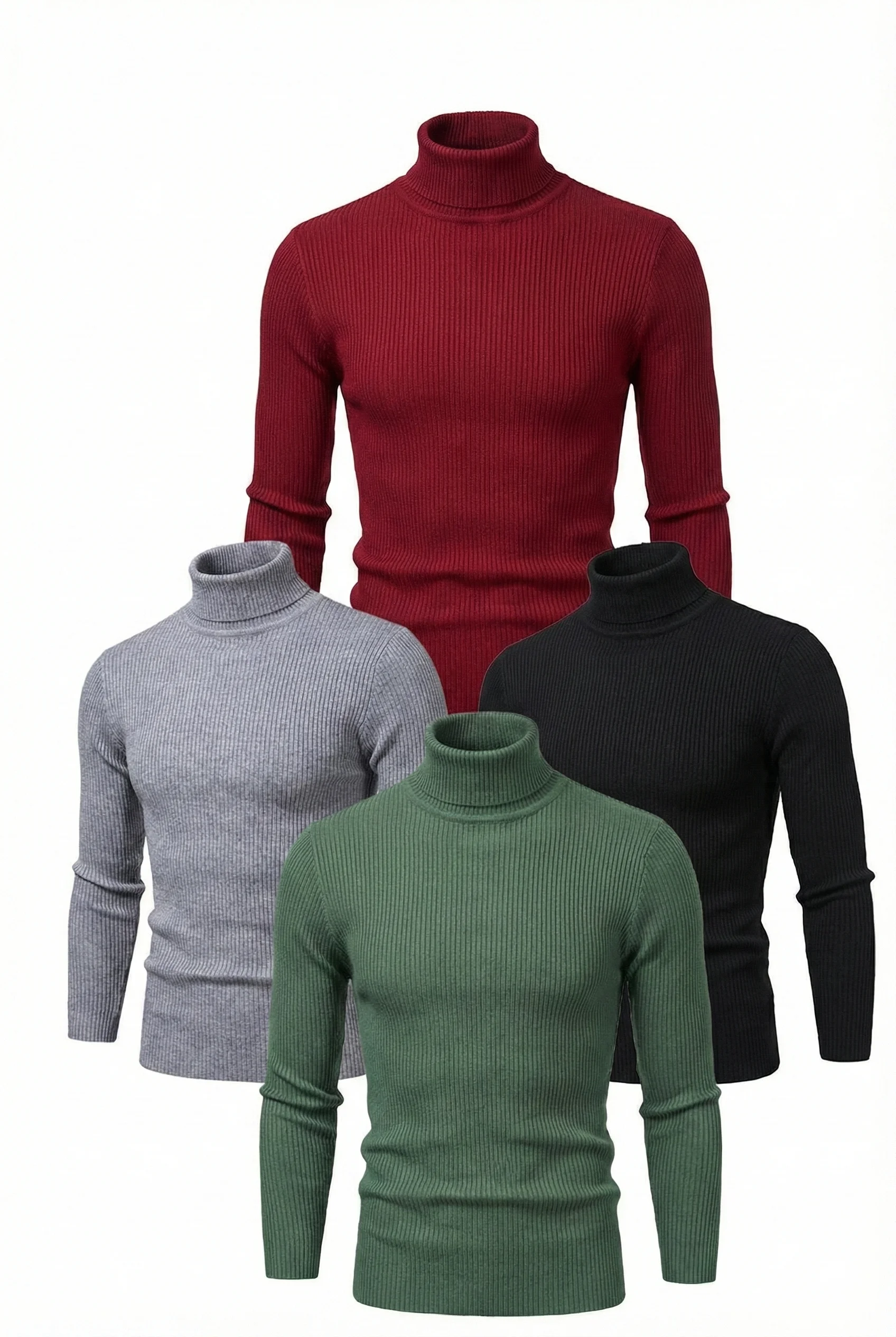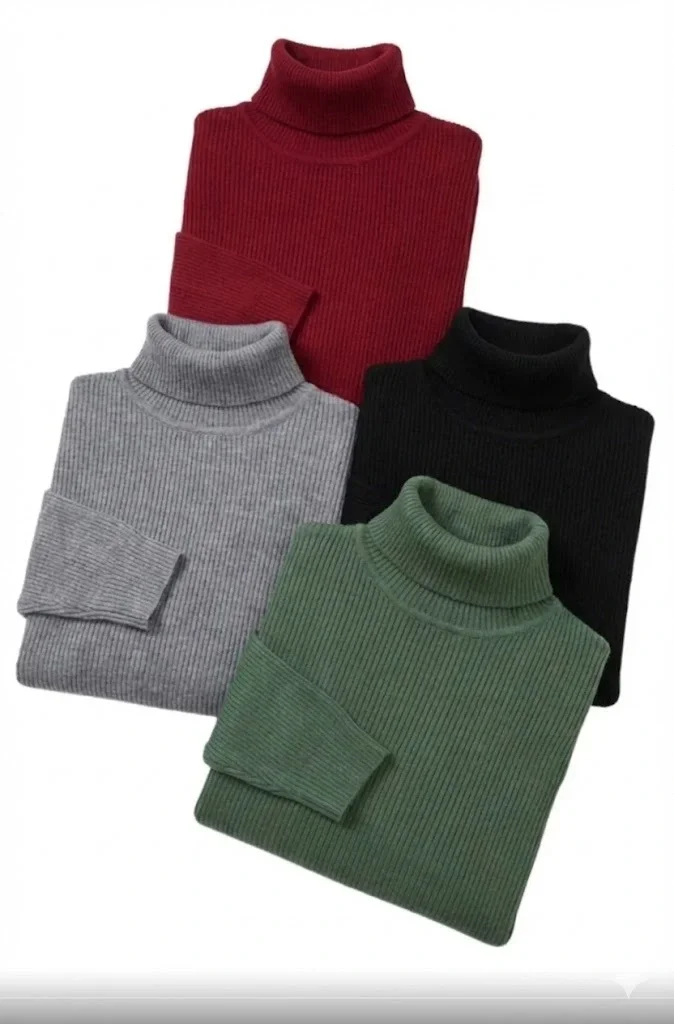 Kaşkorse Boğazlı Likralı Fitilli Slim Fit Body 4’lü Set Siyah-Bordo-Gri-Haki