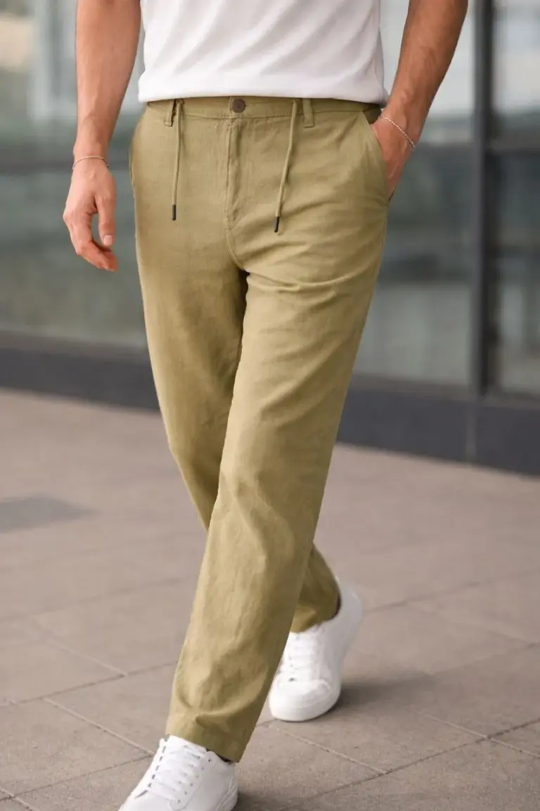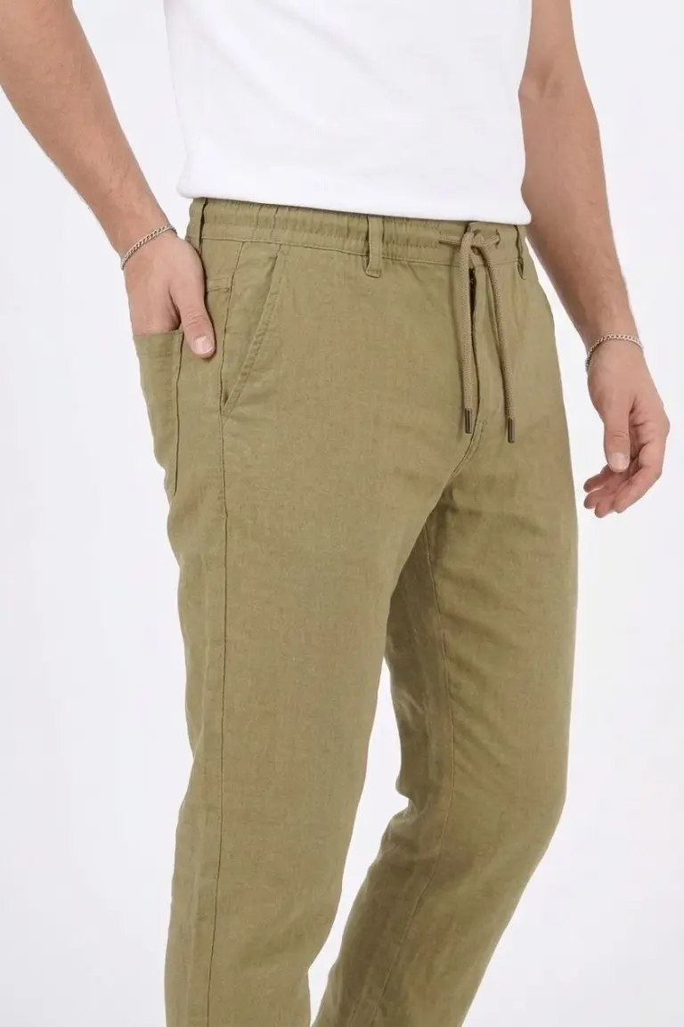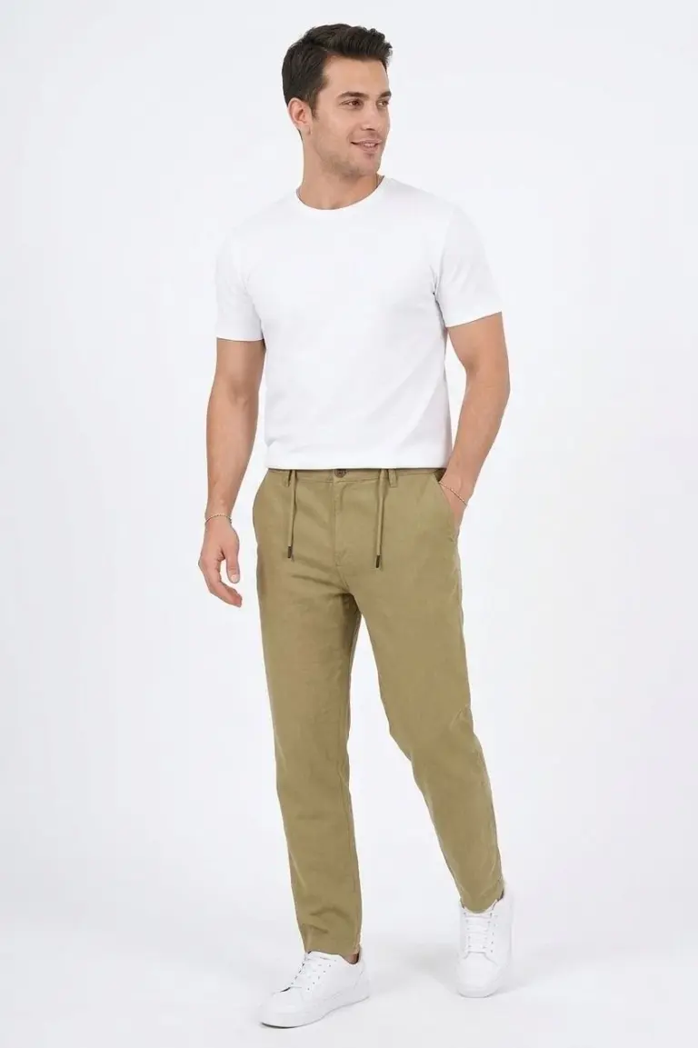 Erkek Keten Cepli Pantolon Lastikli Bel Bağcıklı Önden Fermuarlı – Mint Yeşili