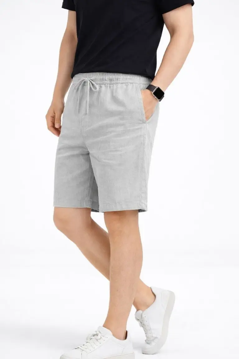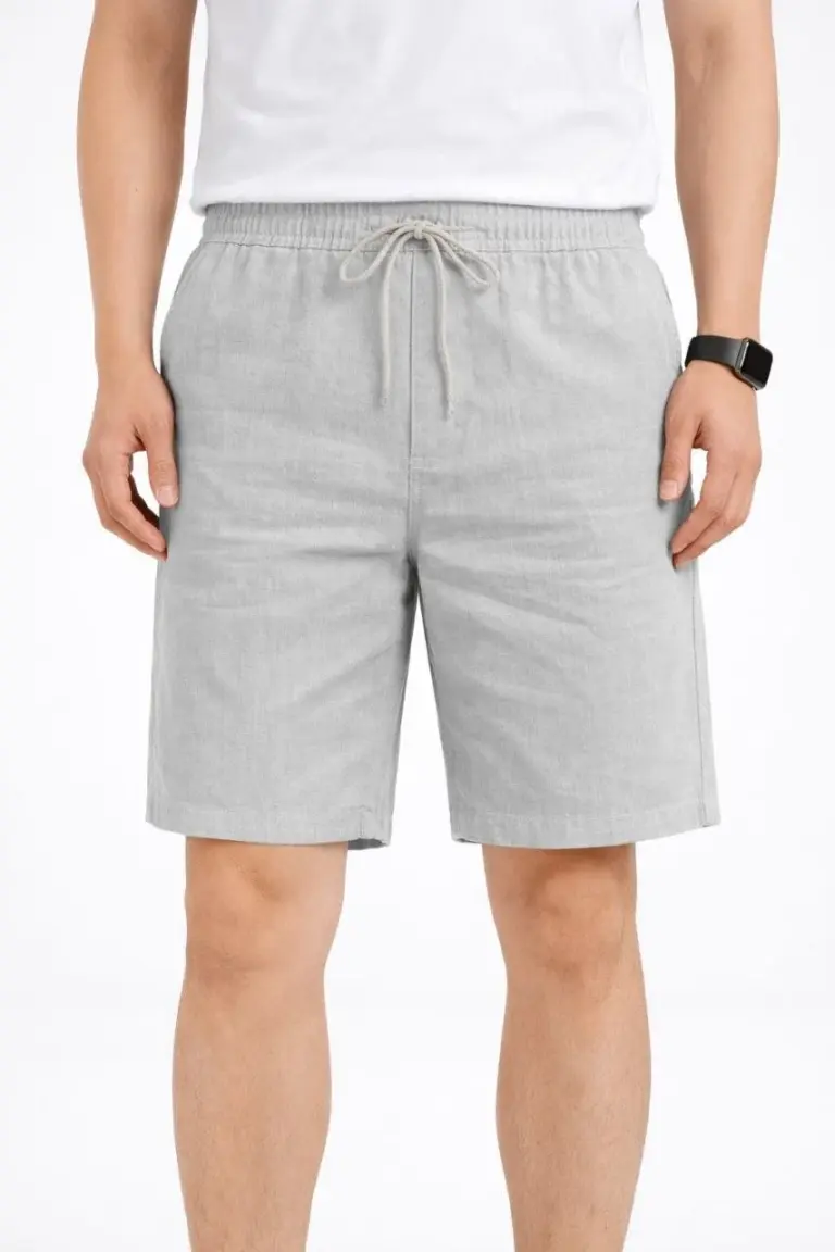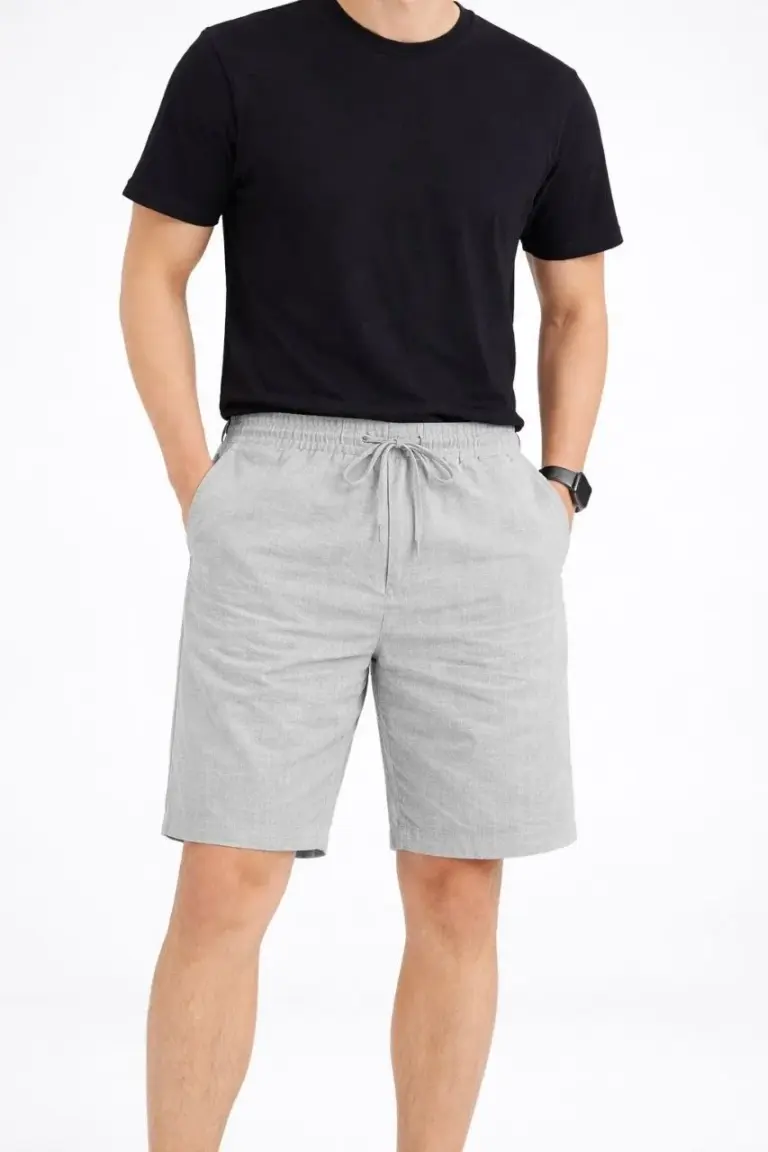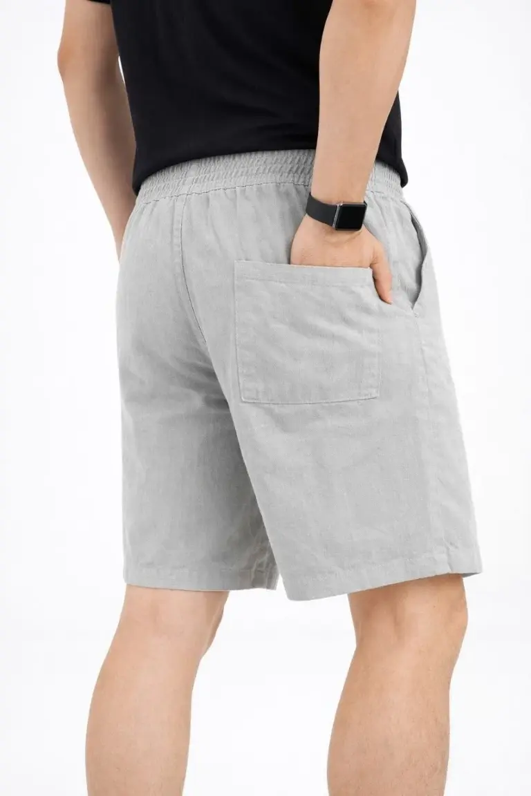 Keten Kumaş Cepli Rahat Kesim Bel Lastikli Şort – Gri
