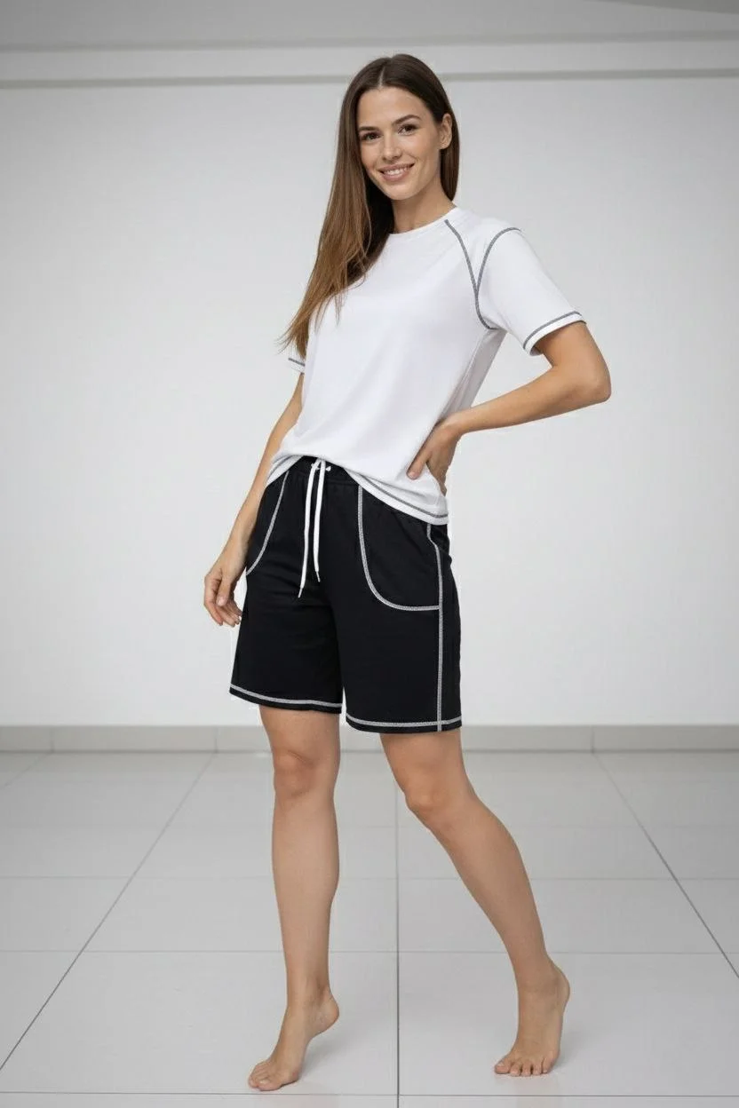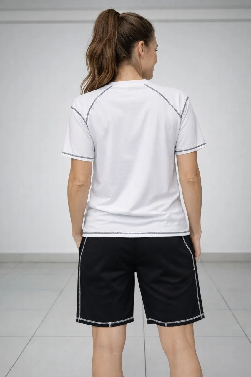 Kısa Kol Oversize Kalıp Tişört Şort ikili Takım Kontrast Dikişli – Beyaz