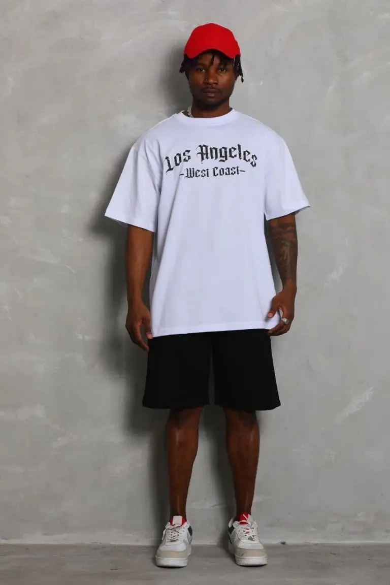 Kısa Kol Tişört Bisiklet Yaka KANAT Baskılı Oversize T-Shirt – Beyaz
