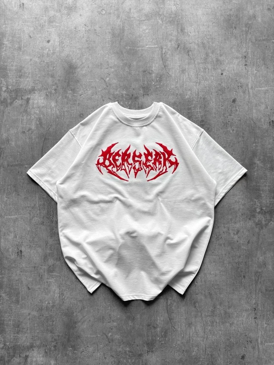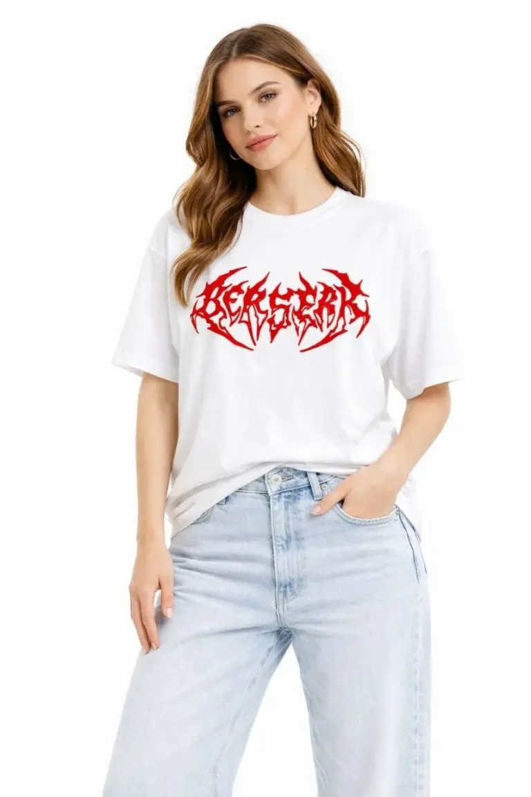 Kısa Kol Yazlık Tişört Bisiklet Yaka Baskılı Oversize T-Shirt – Beyaz
