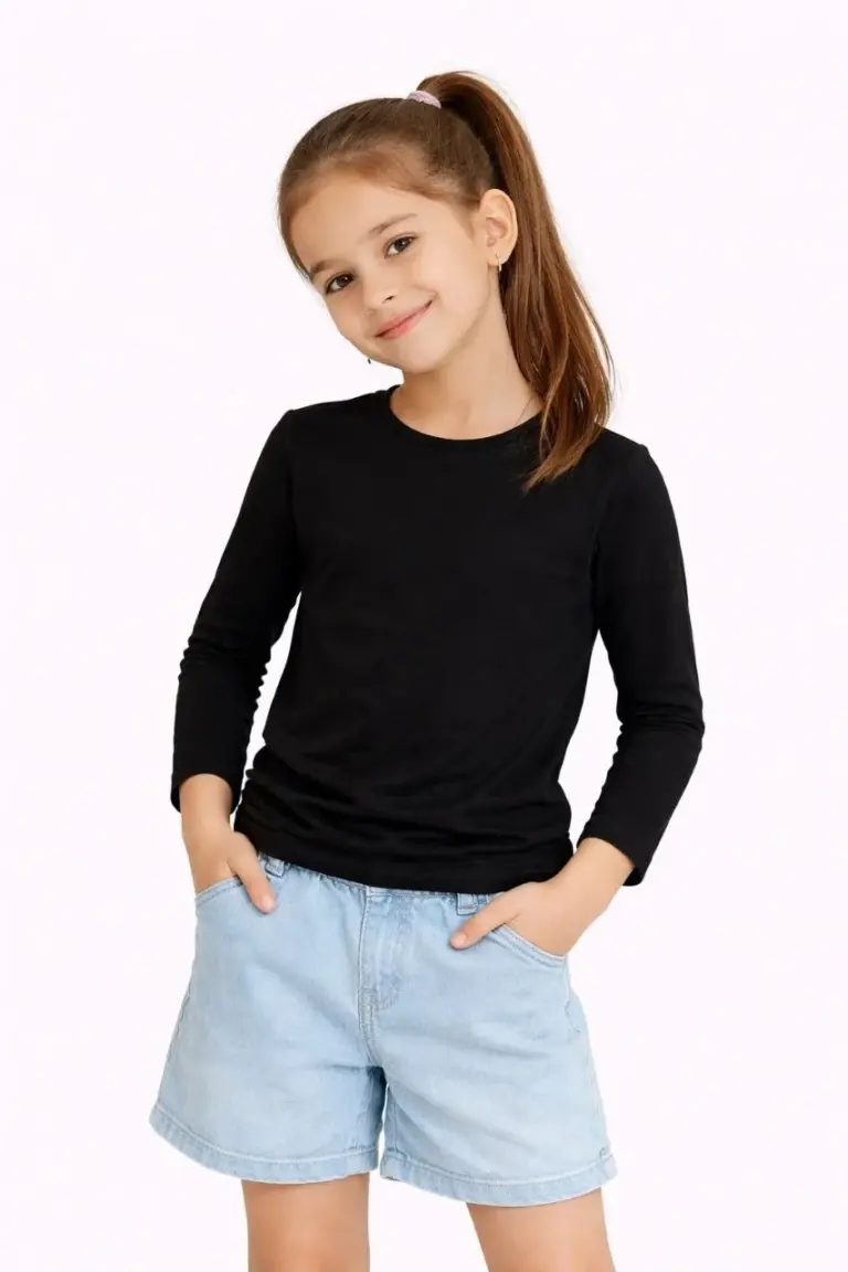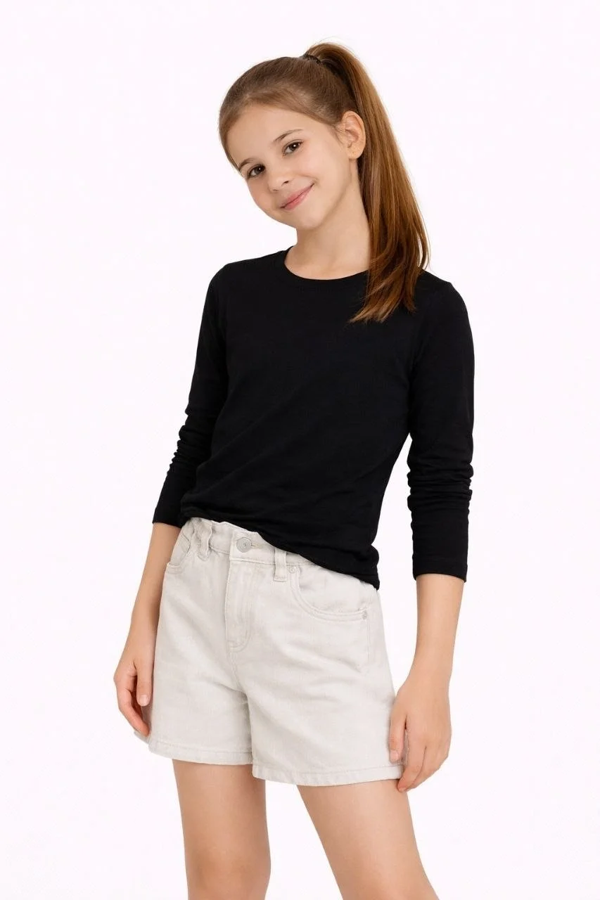 Kız Çocuk Basic Uzun Kollu Tişört Okul Günlük Rahat T-Shirt – Siyah