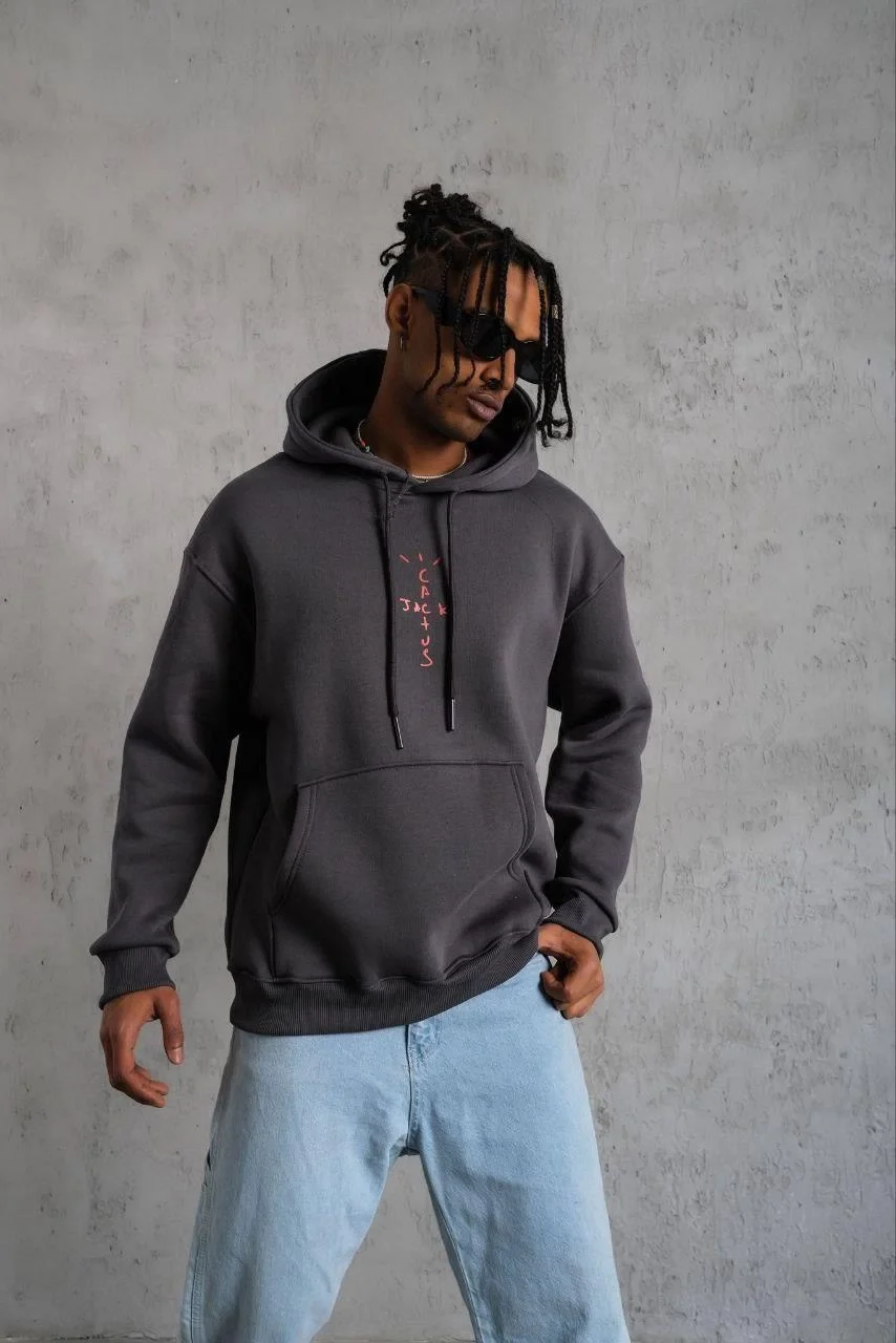 Kordonlu Arka Maske Kordon Saçlı 3 iplik pamuklu Kapüşonlu sweatshirt – Füme