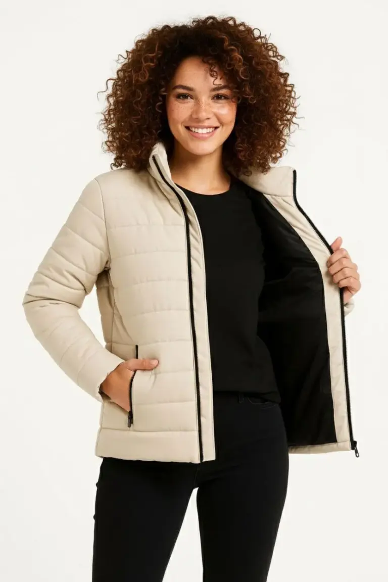 Mikro Su İtici Kapitone Baskılı Astarlı Fermuarlı Bomber Mont – Bej